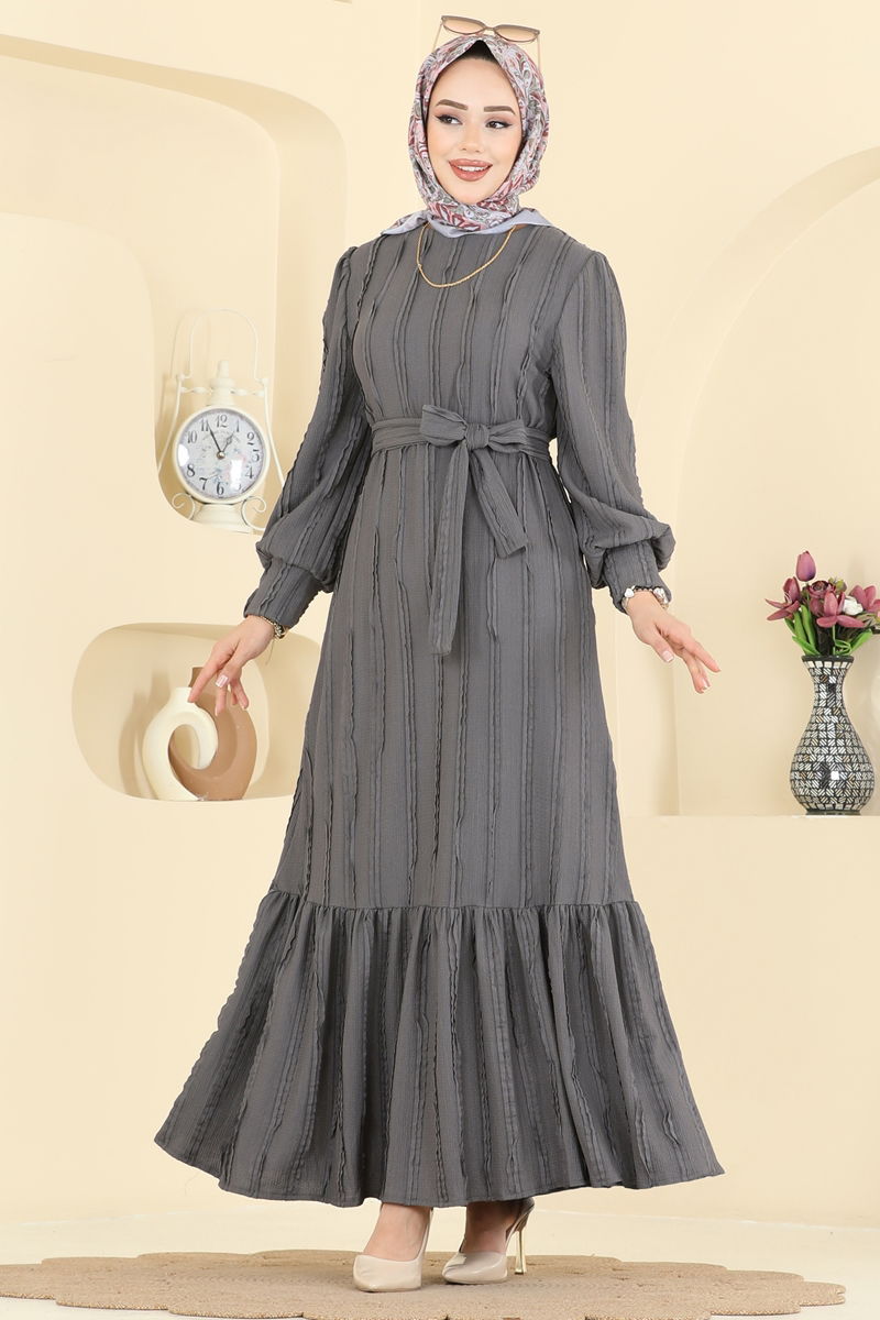 Bisiklet Yaka Detaylı Elbise 7150BG354-MS Gri