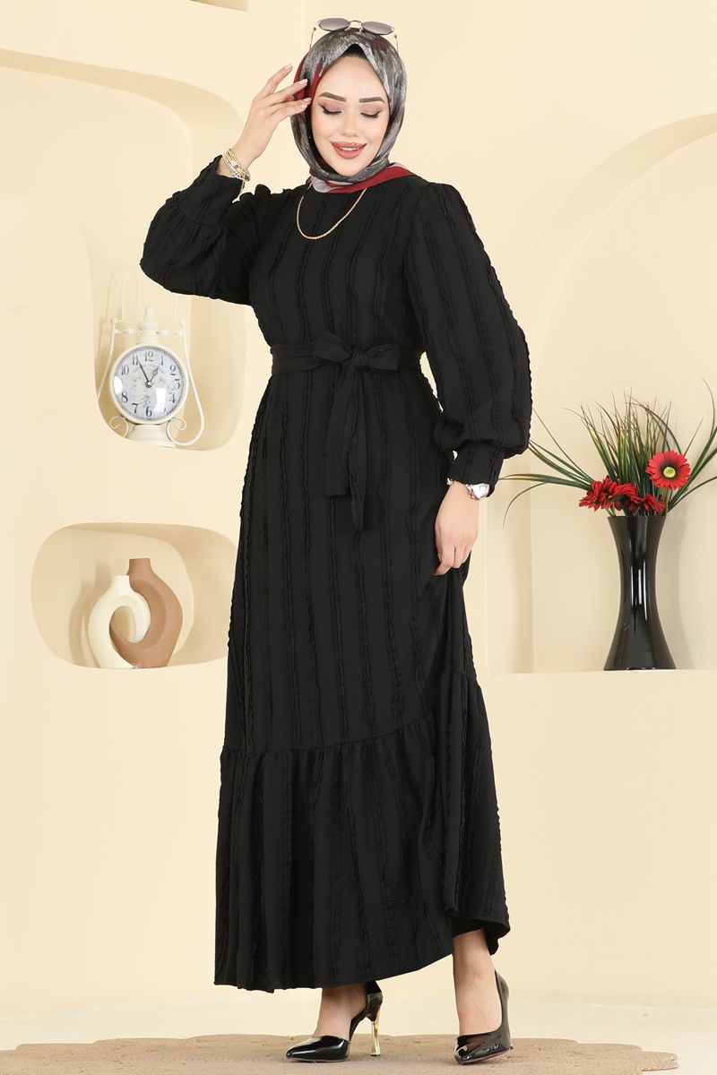 Bisiklet Yaka Detaylı Elbise 7150BG354-MS Siyah