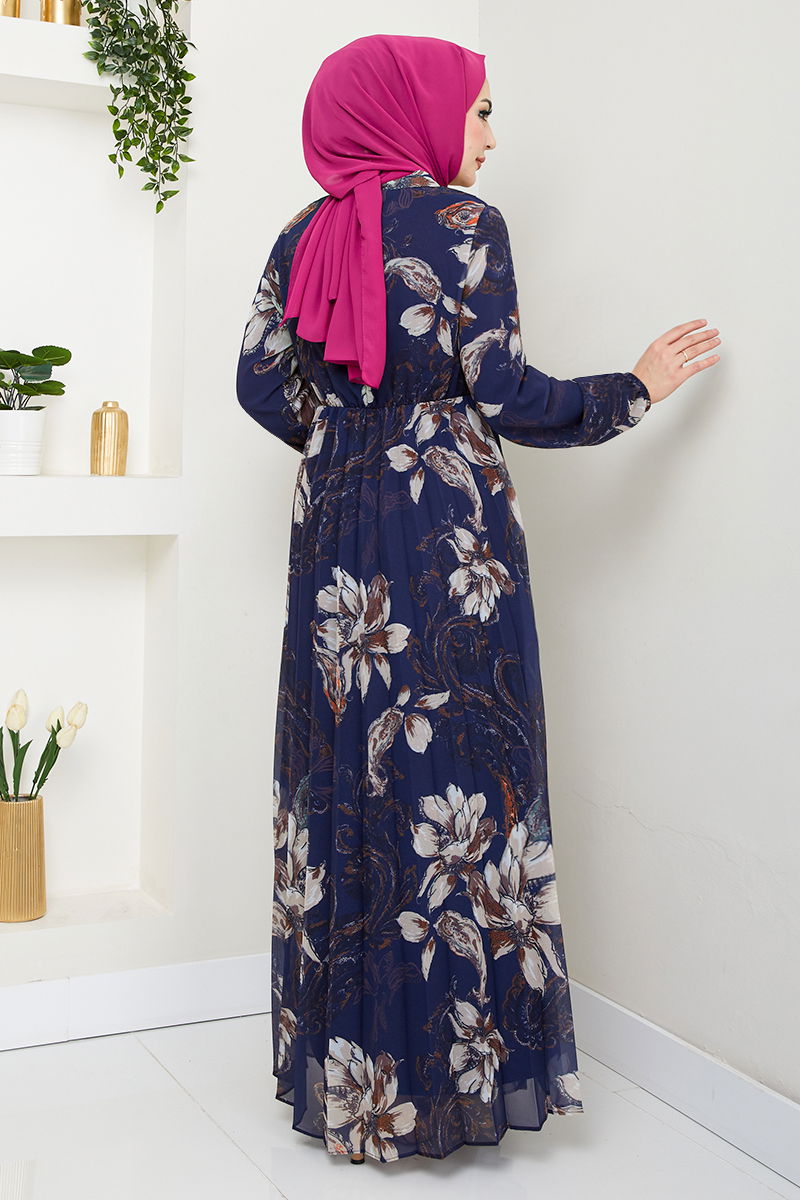 Çiçek Desenli Tesettür Elbise 5035ANT904-M Laci