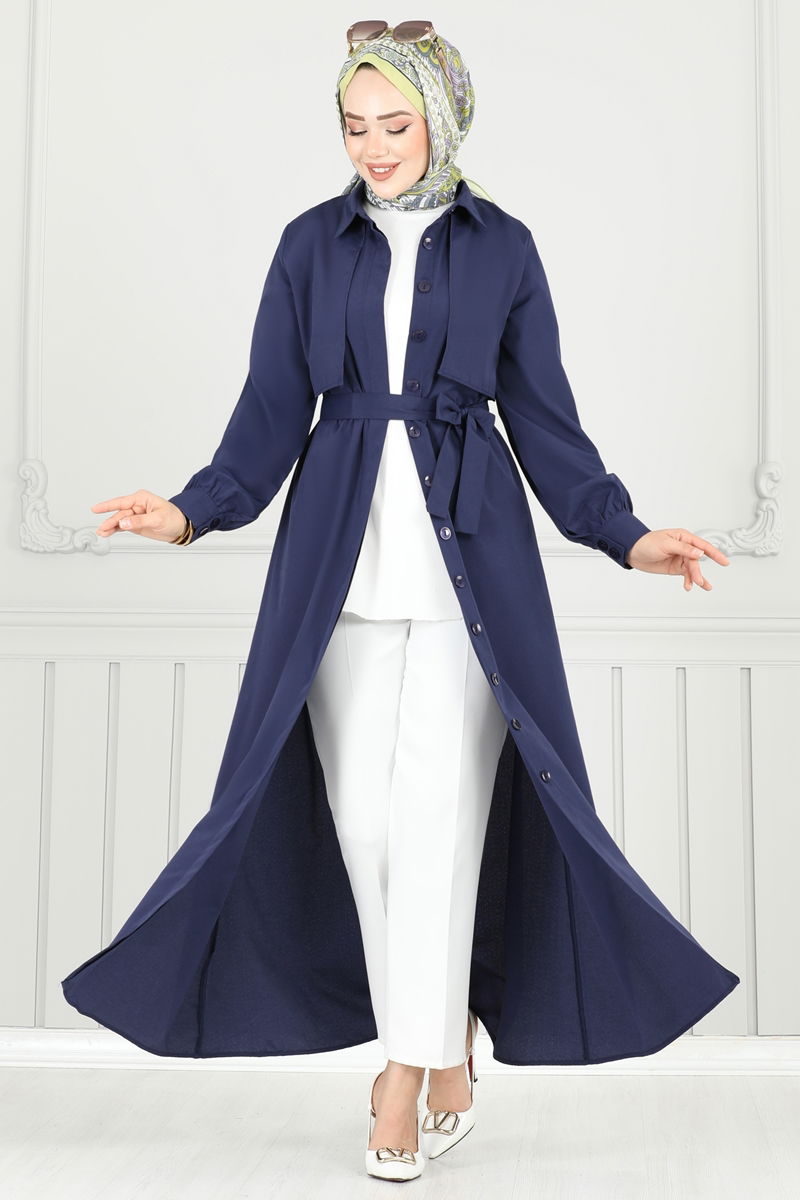Product Feature : It is a new season hijab fashion product. The product has a Shirt collar. The product has Secret buttons. Unlined. Belt included, optional not available. Cuff buttons are active. There may be a tonal difference in the product due to concept photo shoots.