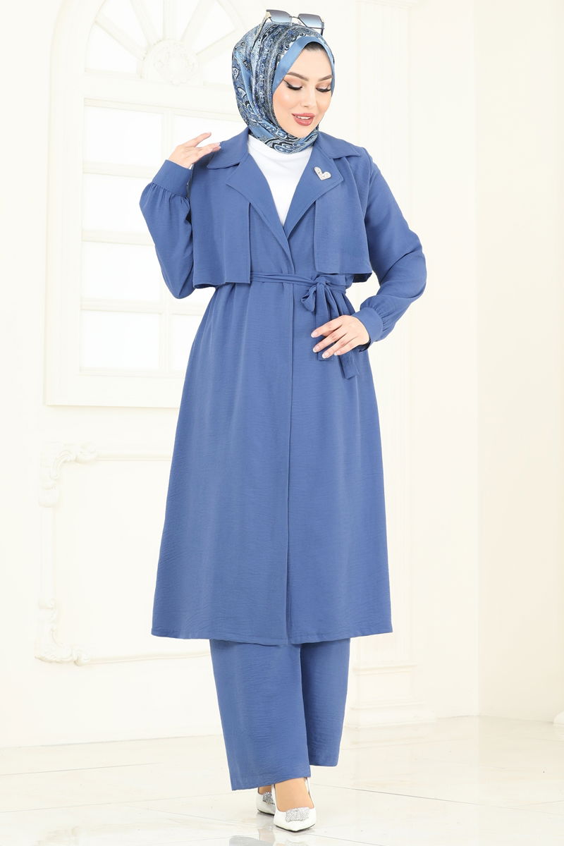 Ürün Özellikleri:Mevcut tesettür moda koleksiyonuna aittir. Üründe kruvaze yaka kullanılmıştır. Astarı yoktur. Kemeri ürüne ek olarak sunulmuştur, kullanımı kişiye özeldir. Bluz ürüne dahil değildir, sadece kombin amaçlı gösterilmiştir. Aksesuarlar fotoğraflara dahil edilmemiştir. Pantolonun bel kısmı elastiktir. Kapak düğmeleri işleve sahiptir. Renk farklılıkları çekimlerden kaynaklanabilir.