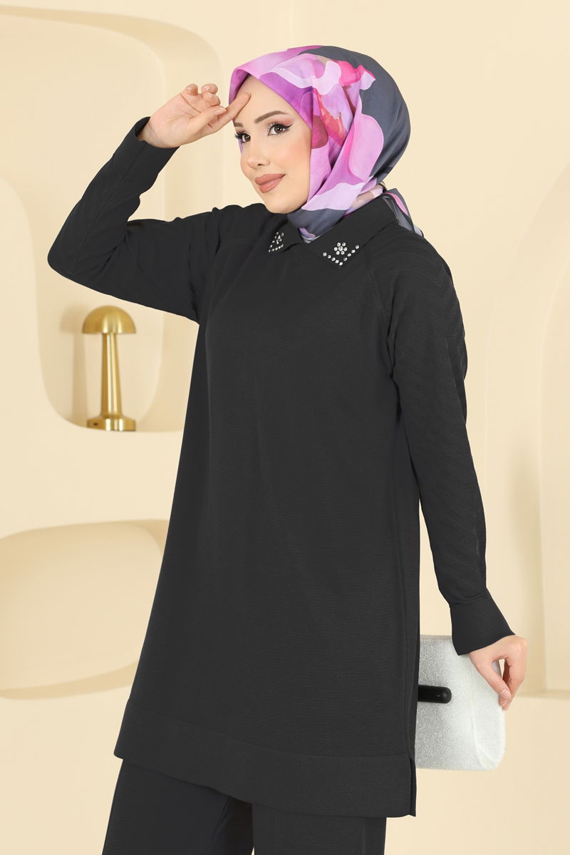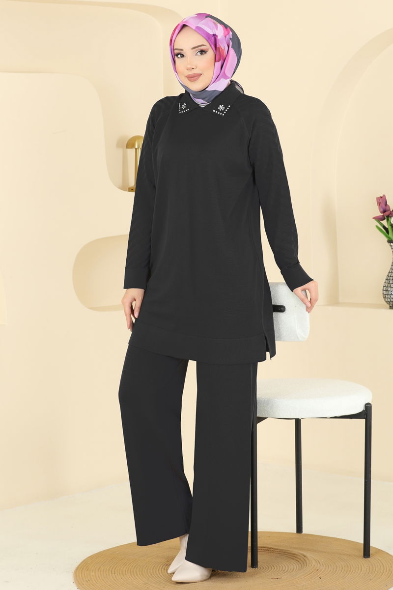 Product Feature : It is a new season hijab fashion product. Unlined. Stone details are pebble. The waist of the trousers is elastic. There may be a tonal difference in the product due to concept photo shoots.