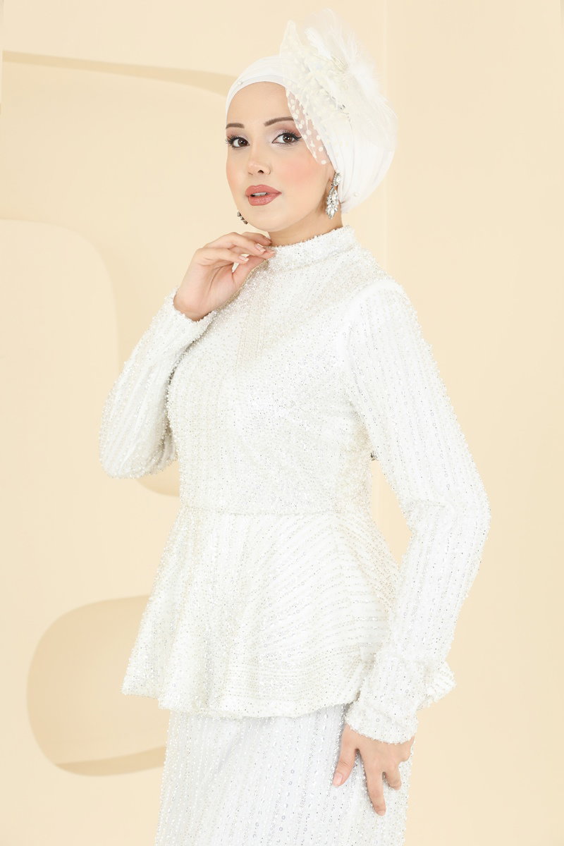 Kumaş Bilgisi: Şifon üzerine inci detaylarla süslenmiştir. Her sezon tercih edilebilir.