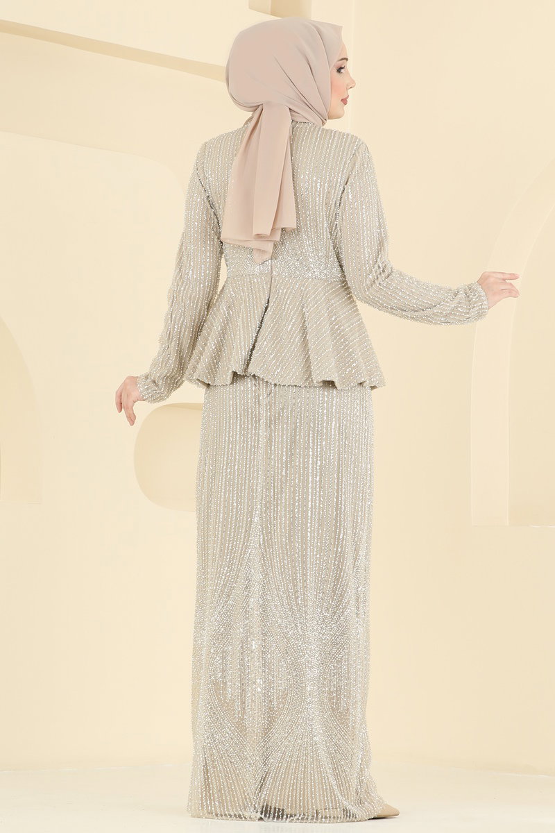 Boncuk Detaylı Tül Abiye 8080YG95-MS Vizyon