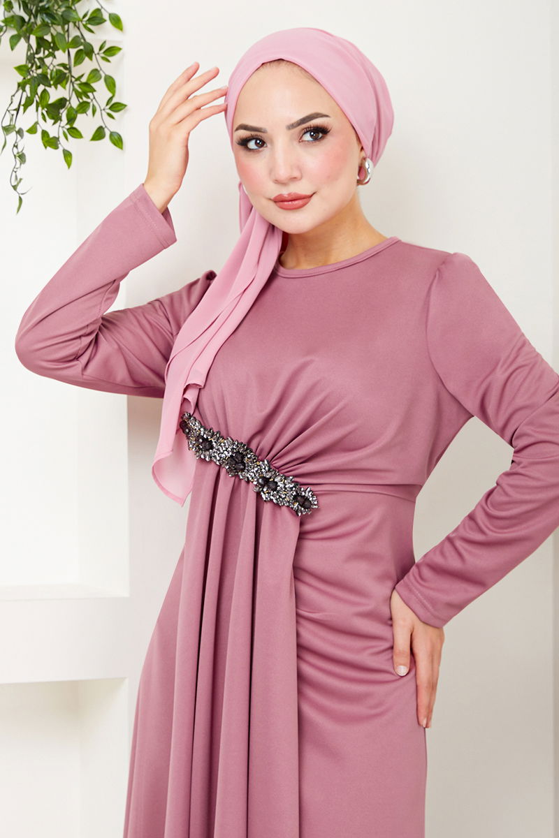 Brooch Detailed Evening Dress Rose Drywall Feature: It is made of first-class Knitted fabric. It can be used in Four Seasonal seasons. Product Feature: New season hijab is a fashion product. The product is a bicycle collar. It is unlined.. The product is zipped from the back. The brooch is included in the product, it may not be used on request.There may be a tonal difference in the product due to concept photo shoots. Washing : Only dry cleaning should be done.The exchange time for this product is 24 hours. Since the product is an evening dress product, for exchange, you must send it to us with the cargo you received no later than 24 hours after the product reaches you. (The item on the model is size 38.) Evening Dress Evening DRESS model hijab product with Brooch Detail is an option that you can use easily in any season. Attracting attention with its simple and stylish design, this evening dress is a piece that you can choose during the four seasons season. The product, which is made of first-class knitted fabric, requires only dry cleaning. This evening dress, which has a bicycle collar and no lining, has a zipper design on the back. This zipper detail, which you can easily take off and put on over the product, offers ease of use. The brooch is included in the product and can be used on request. Offering different alternatives with or without brooches, this evening dress also attracts attention with its color and size options. Evening dresses with color options such as Burgundy, Dried Rose, Coffee, Lacquer and Black, 38, 40, 42, 44, 46, 48, 50 it offers suitable alternatives for every body type with its bodies.EVENING DRESS SIZE MEASUREMENTS (CM)BEDENGÖĞÜSBELBOY389478138409884138421028813844106901384611094138481141001385011810413852122110138Weight (Kg):0.6Tags