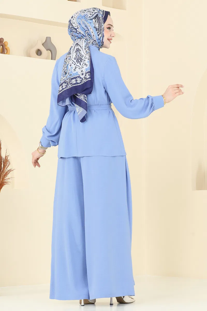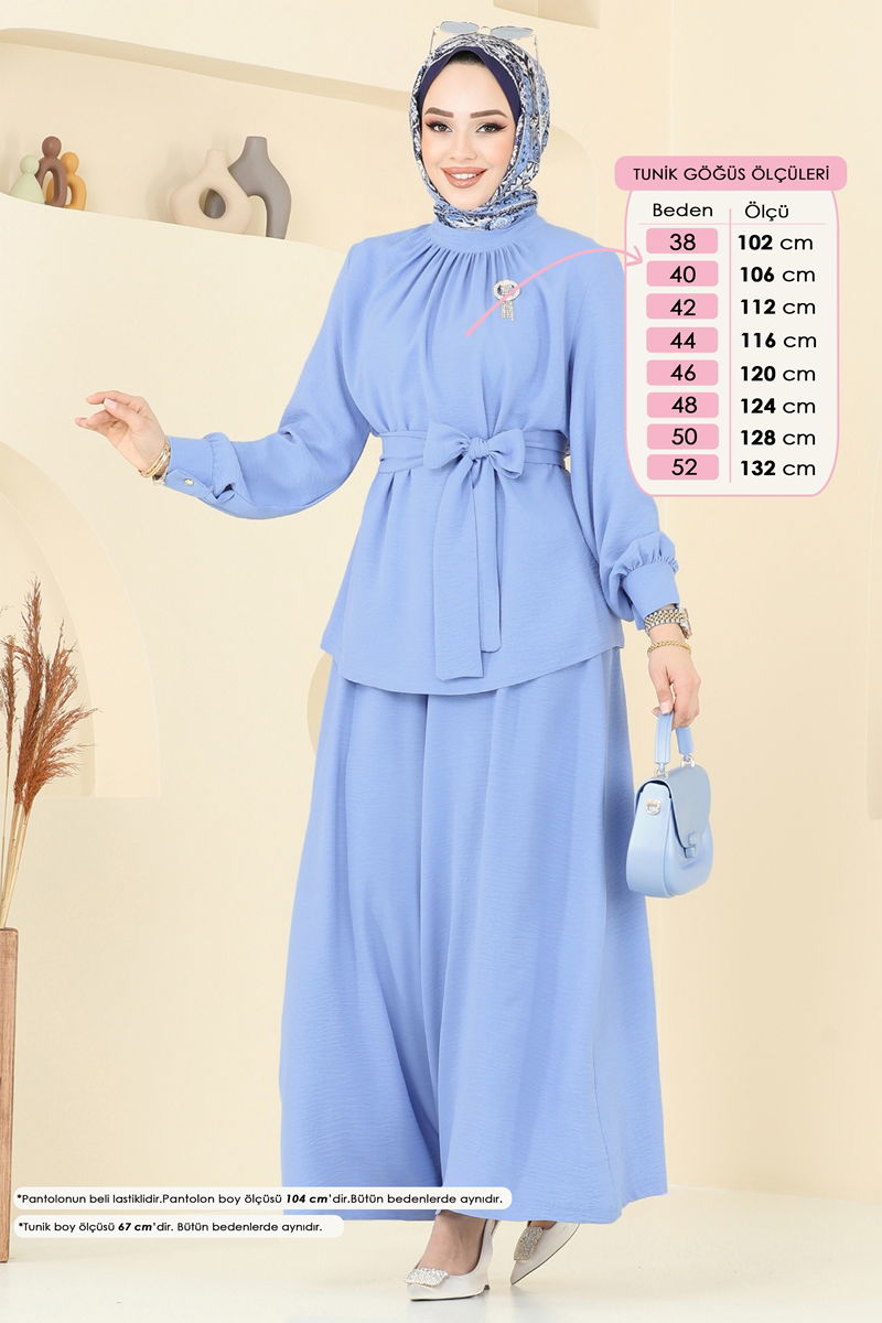 Ürün Özellikleri : Tesettür modasına uygun yeni sezon ürünüdür. Ürün hakim yakaya ve sırta düğme kapamaya sahiptir. Astar kullanılmamıştır. Ürün ile birlikte gelen kemer, kullanıcı tercihine göre çıkarılabilir. Broş da çıkarılabilir şekilde tasarlanmıştır. Pantolonun bel kısmında lastik mevcuttur. Manşet düğmeleri kullanılabilir. Fotoğraf çekimleri nedeniyle üründe renk farklılıkları görülebilir.