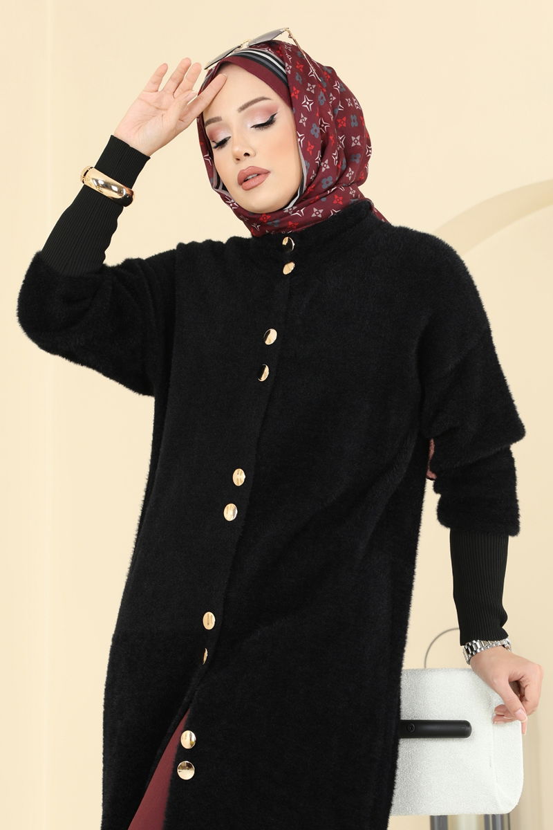 Keep warm during the autumn and winter months with the Gold Buttoned Knit Cardigan, offering both comfort and elegance. Designed for modest wear, this cardigan is durable with its gentle wash at 30 degrees option. Made from knit fabric, it provides a soft touch and features a semi-mandarin collar and front-button design for ease of use. Its unlined structure offers a lightweight and comfortable experience, and it is available in standard sizes to accommodate everyone.