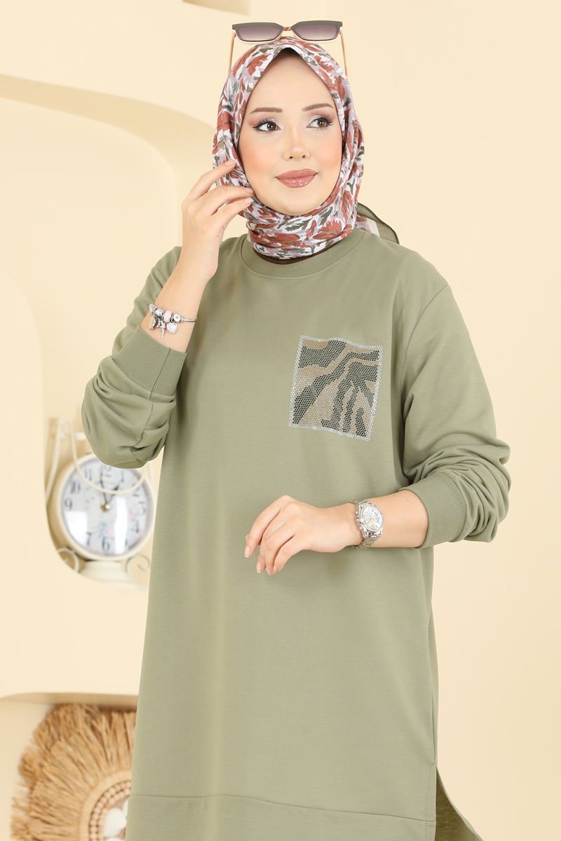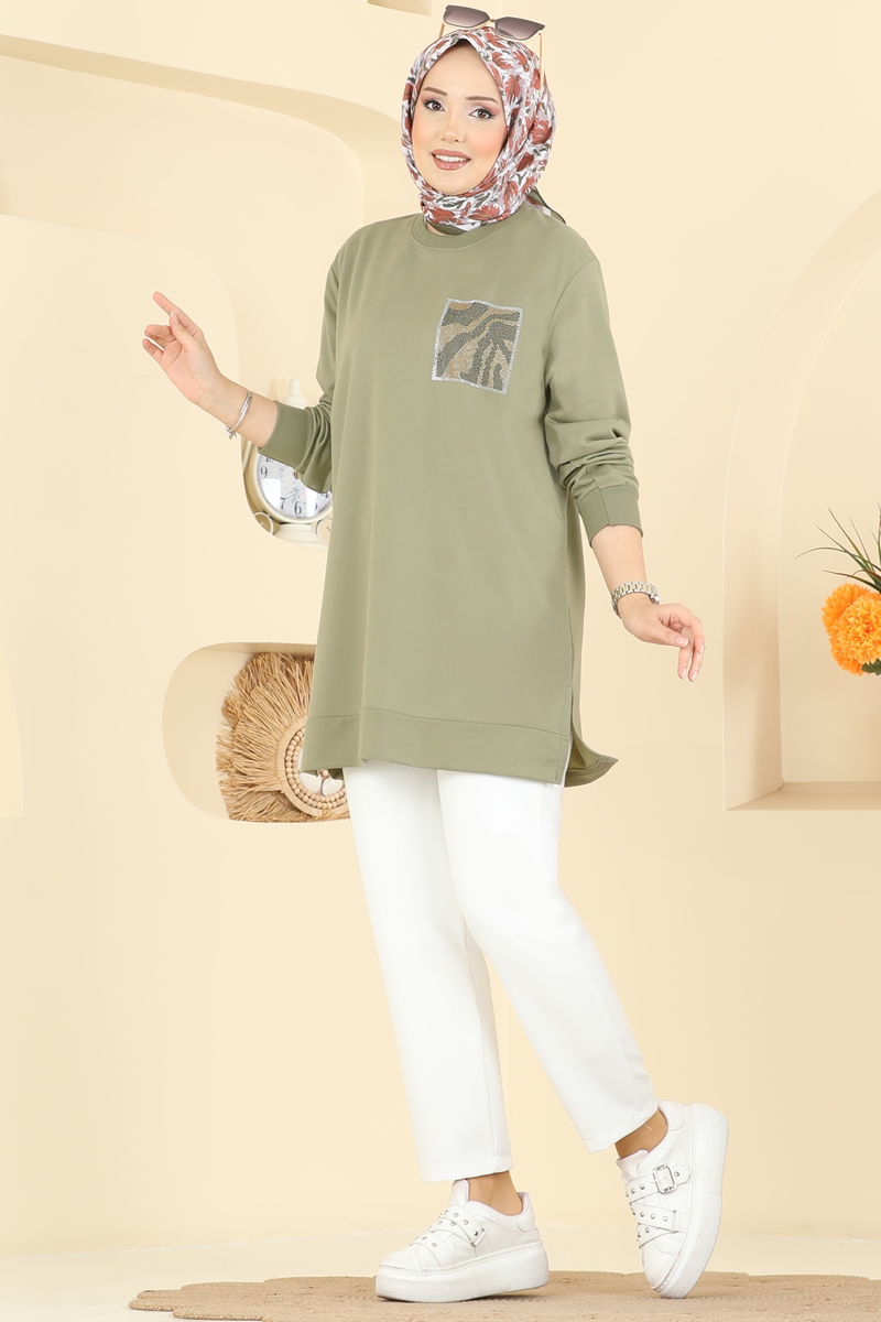 Cep Desenli İki İp Tunik 306OZN1046-MS Haki