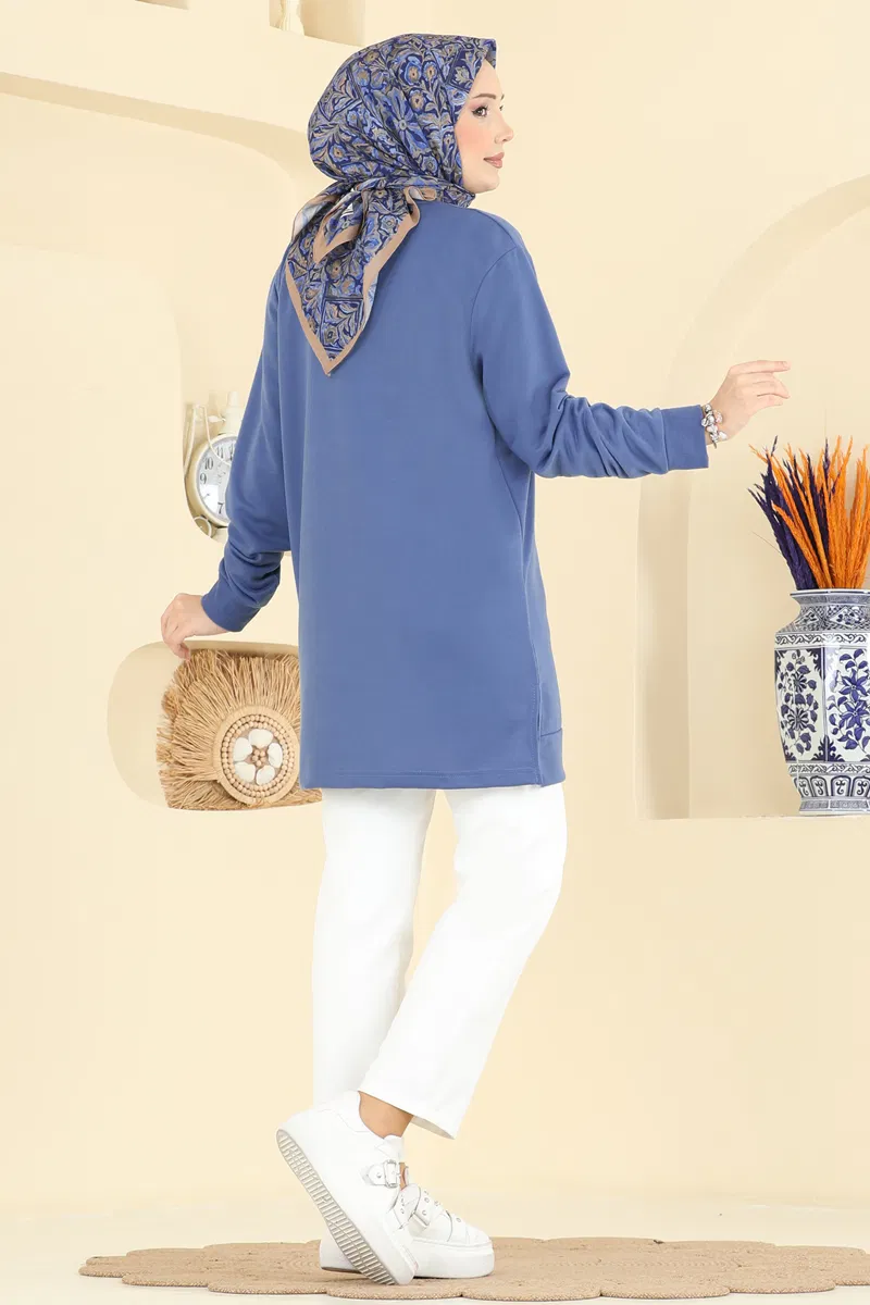 İndigo Renkli Çift İp Tunik – Cep Detaylı