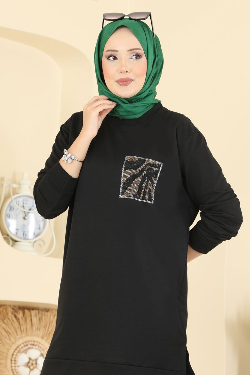 Cep Desenli İki İp Tunik 306OZN1046-MS Siyah