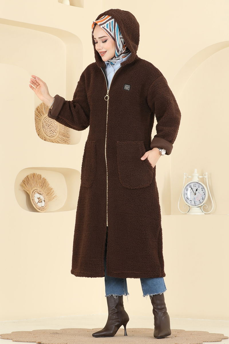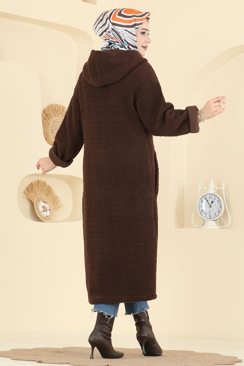 Cep Detaylı Peluş Hırka 2147LYD1165-MS Kahve