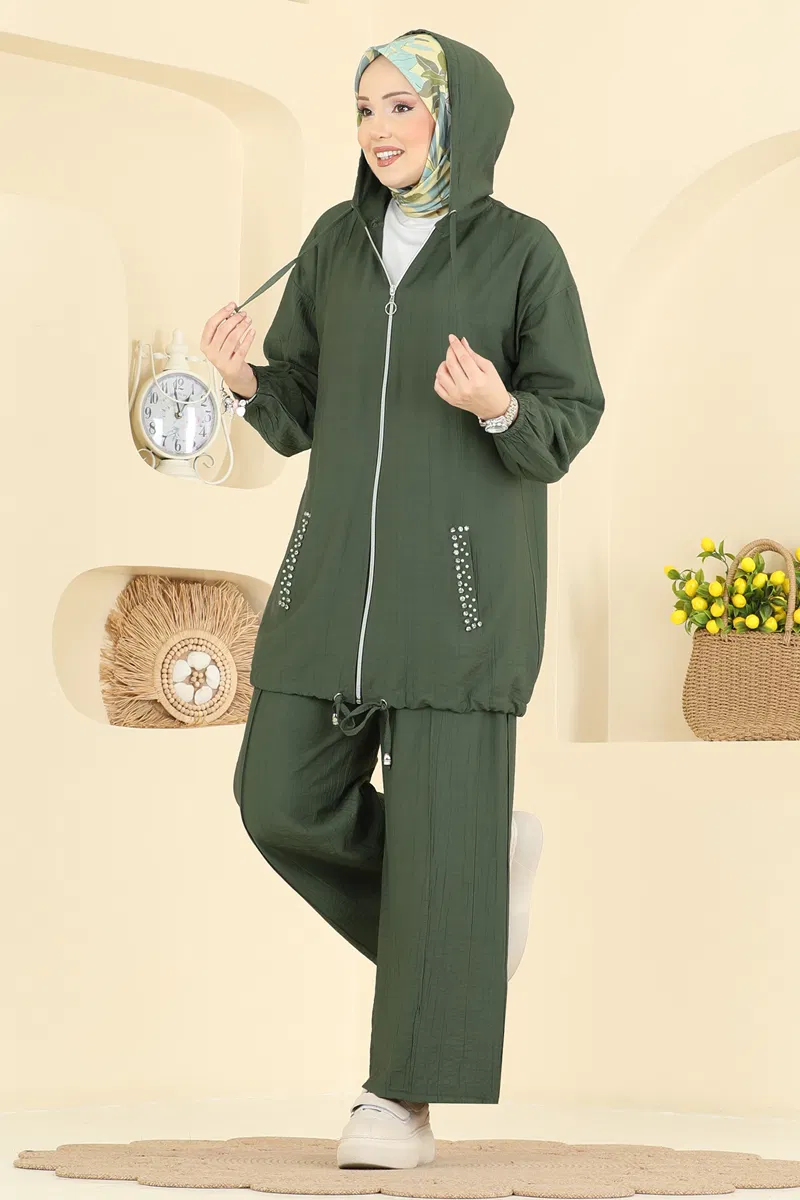 Cepleri Taşlı Dokuma Takım 3257HBS856-MS Haki