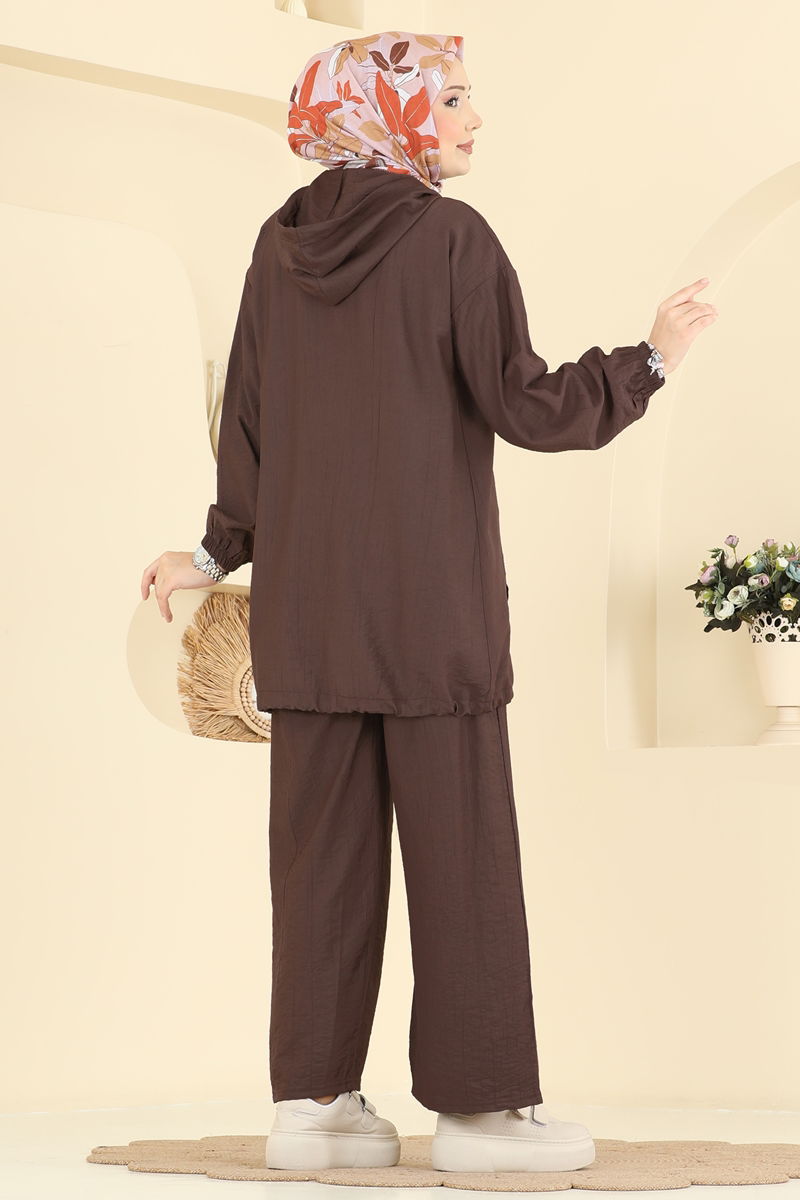 Taş Detaylı Dokuma Takım - Kahve Rengi