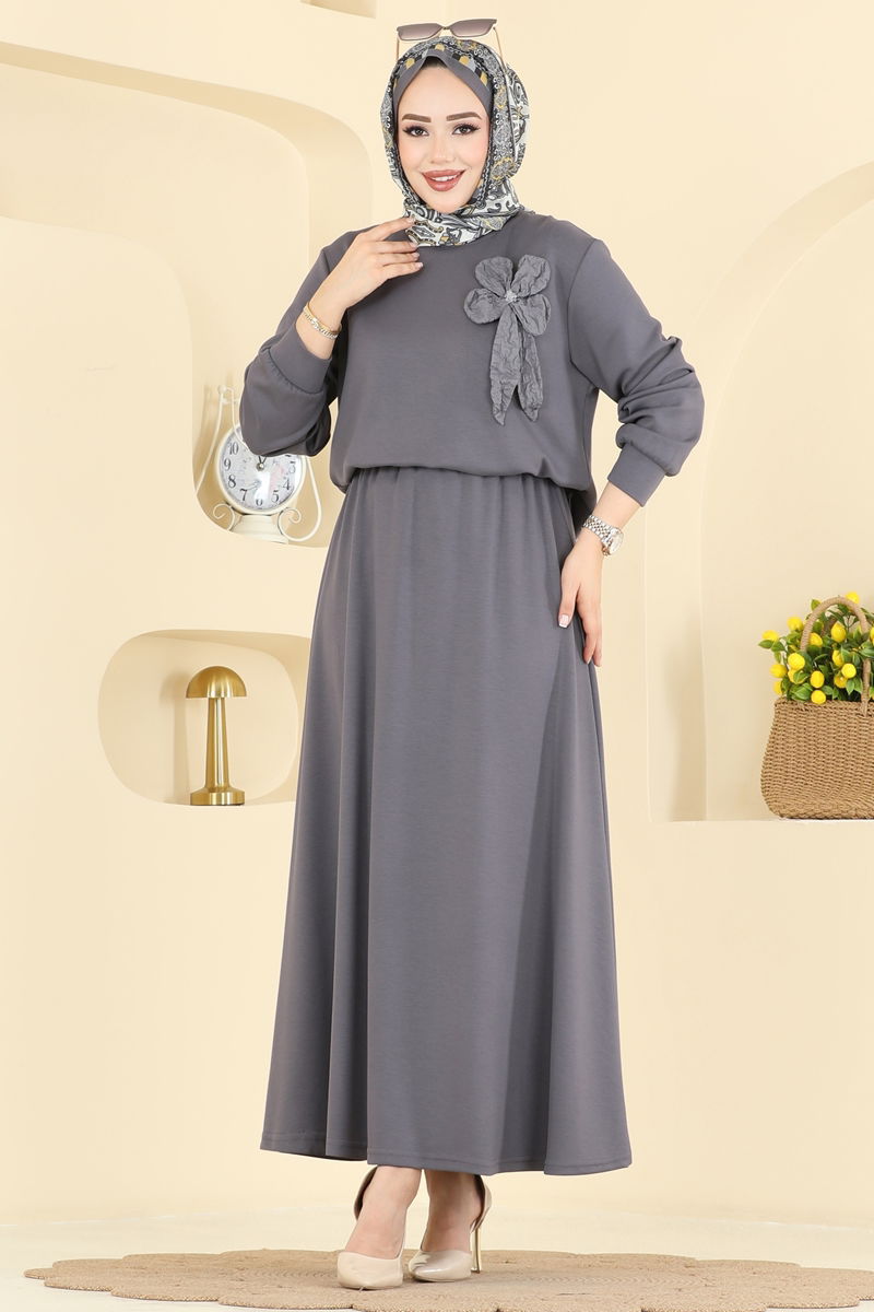 Çiçek Aksesuarlı Etekli Takım 2601TPK1167-MS Antrasit