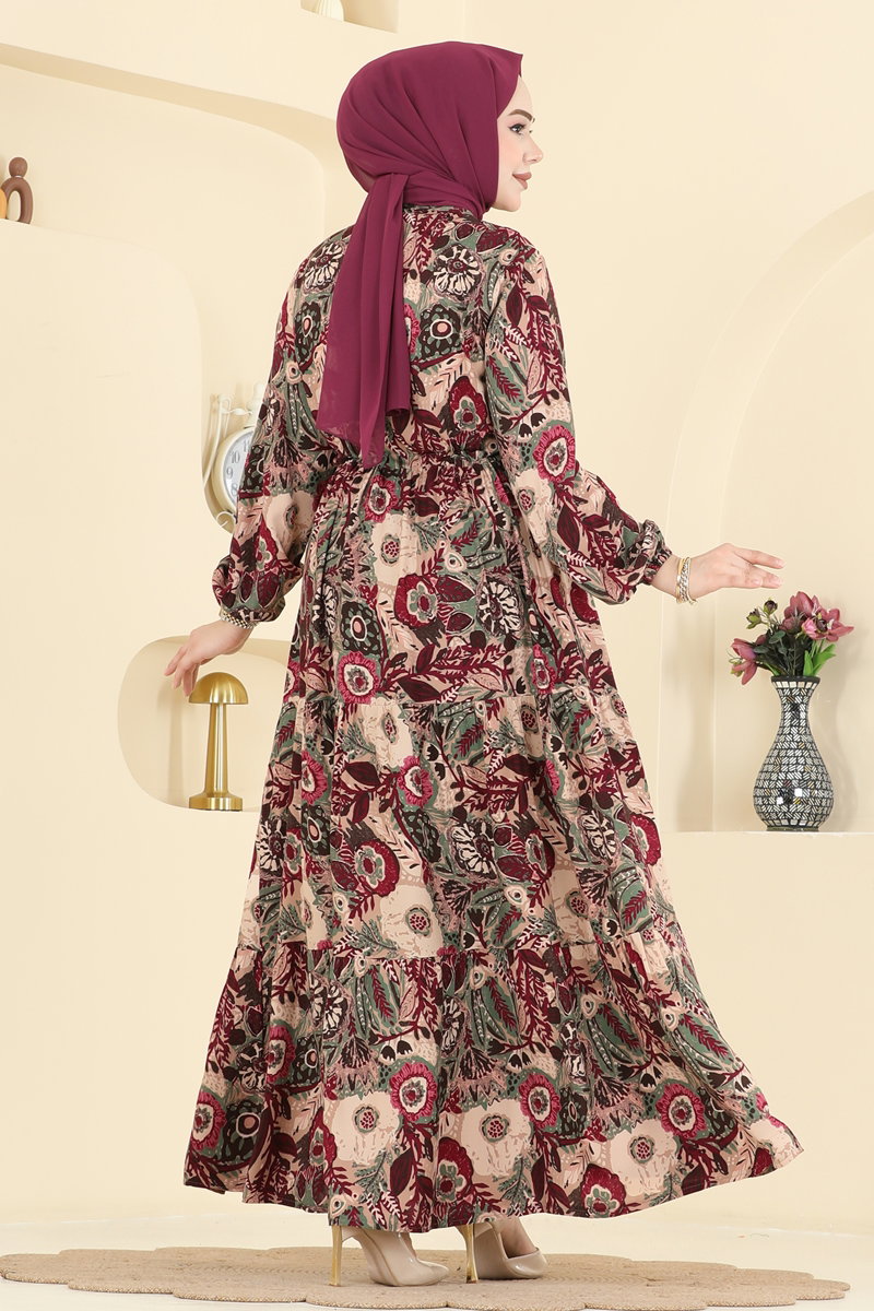Çiçek Desenli Viskon Elbise 7157ERK1158-MS Mürdüm
