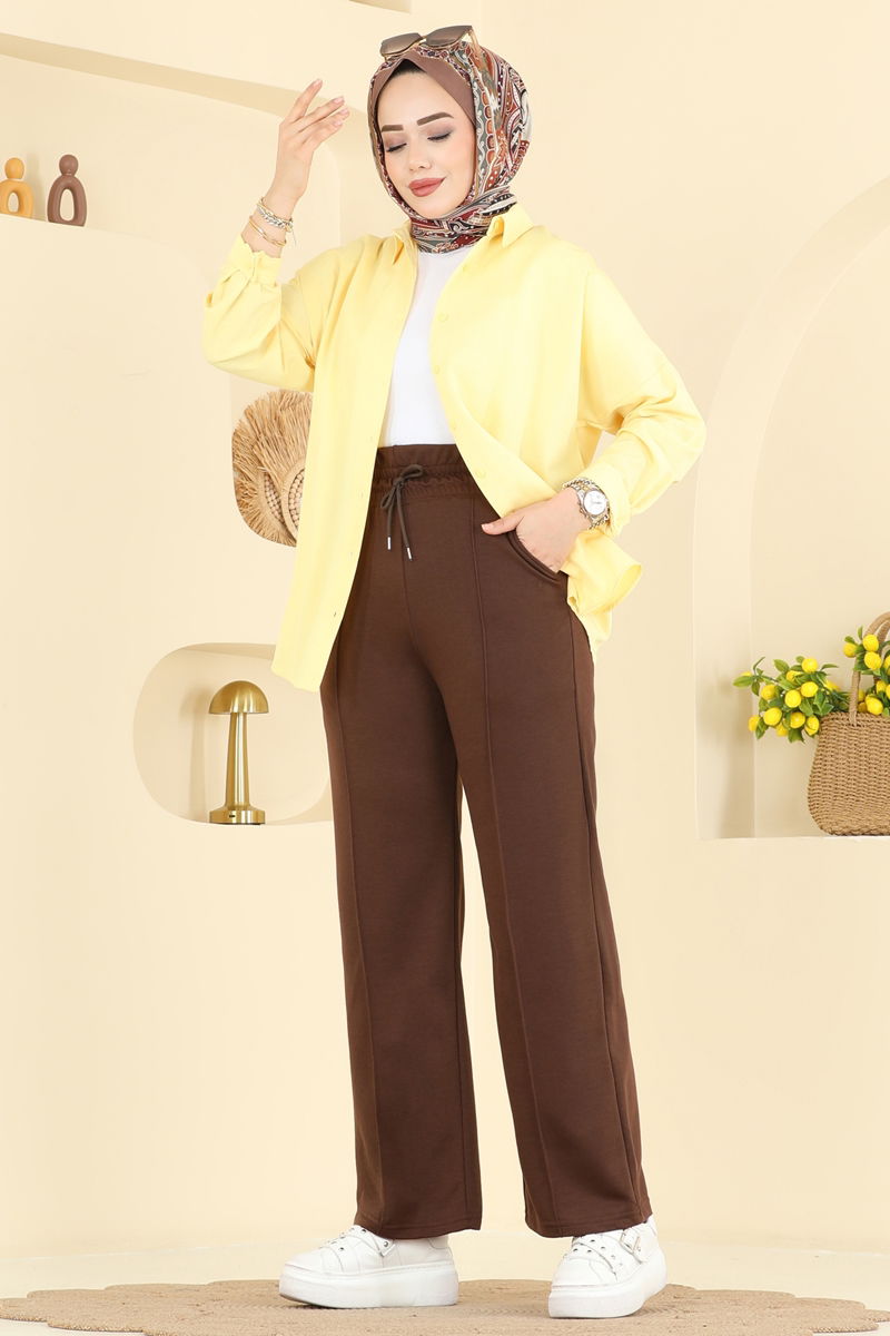 İki İplik Kahve Pantolon - Çima Dikiş Detaylı