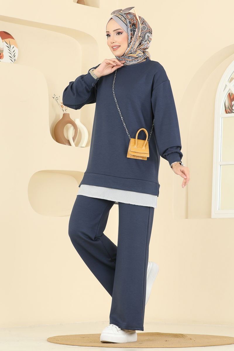Yaz kış demeden kullanabileceğiniz Çizgi Detaylı Modal Takım, her sezon konfor ve şıklığı garanti ediyor. Özel modal kumaştan üretilen bu takım, 30 derecede yıkanabilir ve şeklini korumak için sıkılmamalıdır. Tasarımı itibariyle bisiklet yaka ve yanlarda zarif yırtmaçlara sahip tunik, lastik bel pantolon ise günlük kullanımda üst düzey rahatlık sunar. Kapalı giyimde şıklık ve rahatlığı önemseyenler için biçilmiş kaftandır.