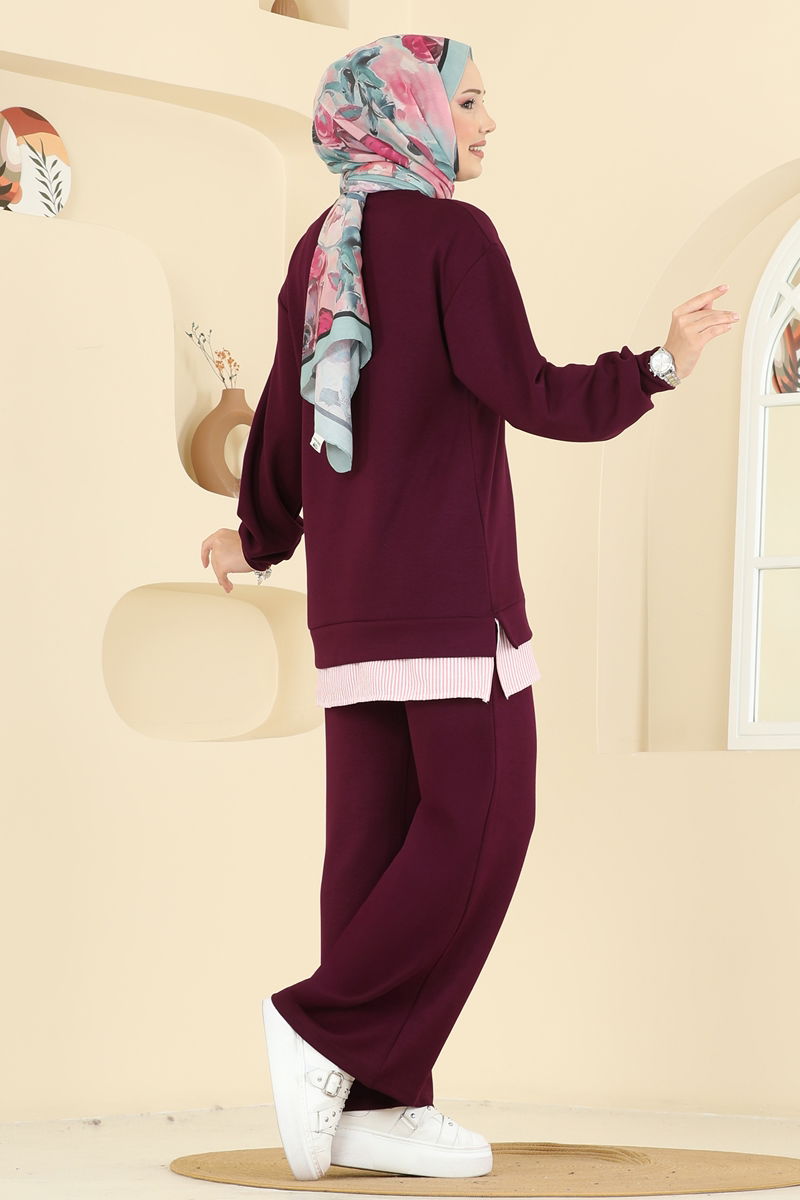Çizgi Detaylı Modal Takım 3246HBS856-MS Bordo