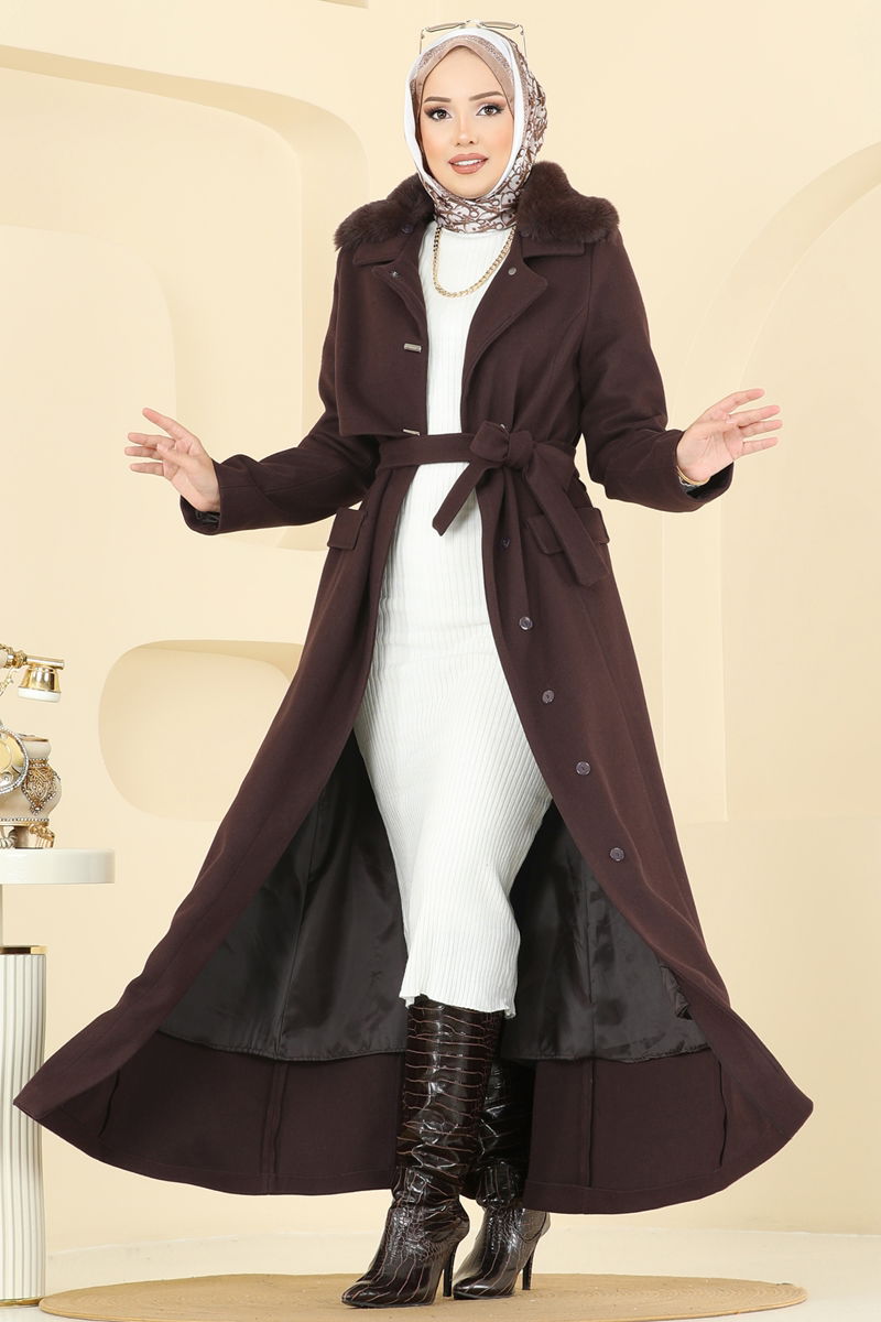 Product Feature : It is a new season hijab fashion product. The product has a Fur collar. The product has From the front buttons. It is lined.. Fur collar is included in the product, it may not be used upon request. Belt included, optional not available. Pocket available. There may be a tonal difference in the product due to concept photo shoots.