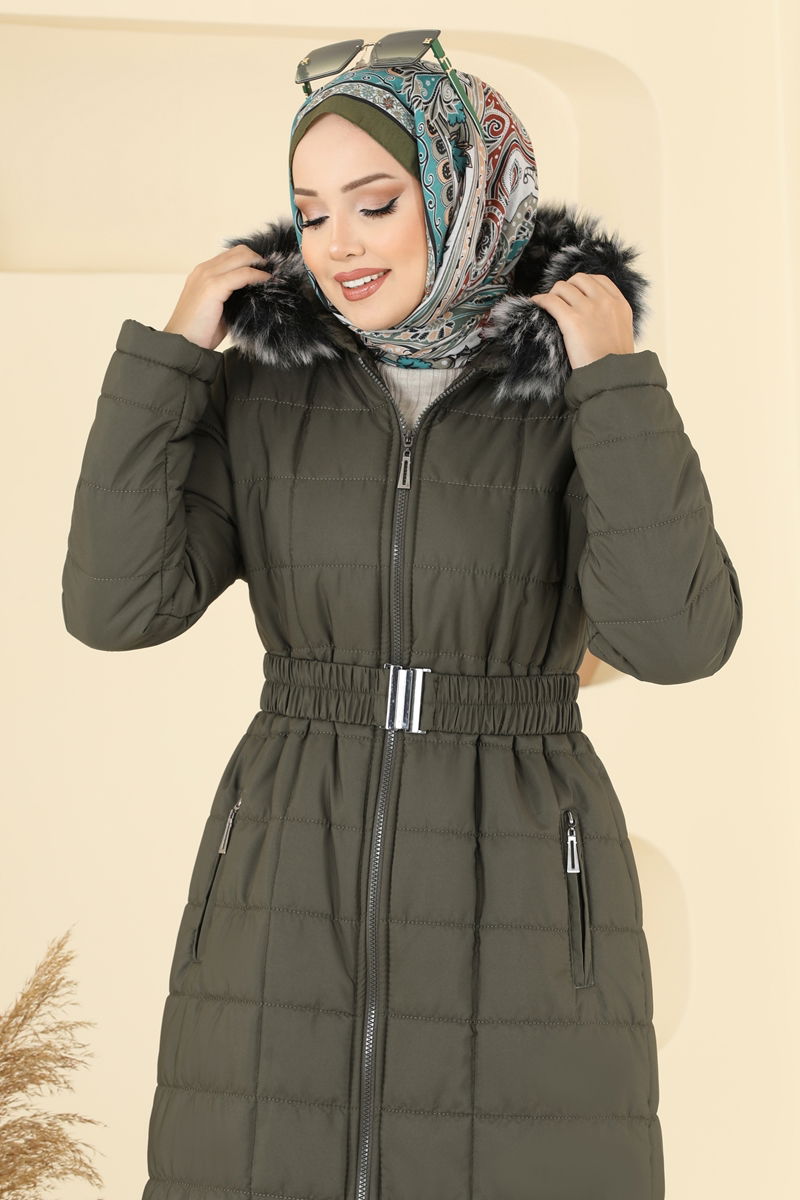 المنتج لديه ياقة مع قبعة. مبطنة.. المنتج به سحاب في جزء من الأمام. يتم خياطة الفراء على المنتج. تم خياطة القبعة مع المنتج الحزام متضمن، ،يمكن استخدامها حسب الرغبة الجيب متاح. قد يكون هناك اختلاف في الدرجة اللونية في المنتج بسبب التقاط الصور الفوتوغرافية.