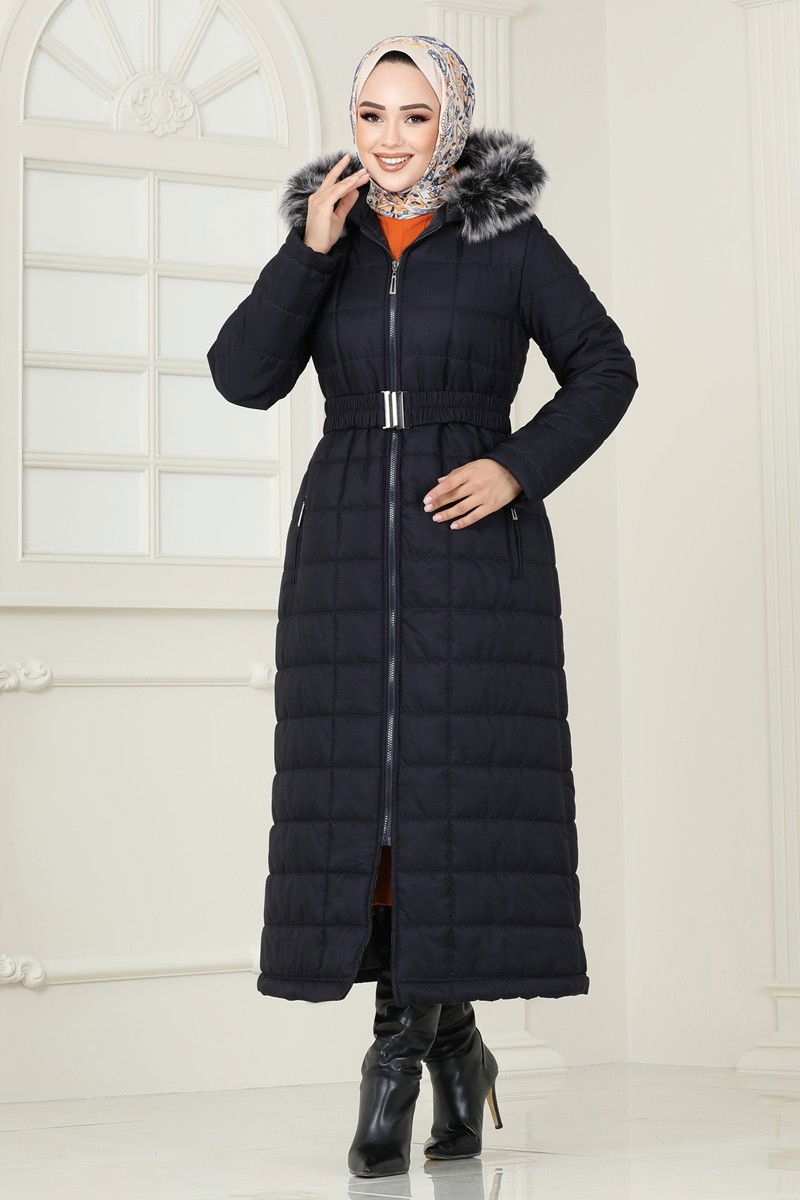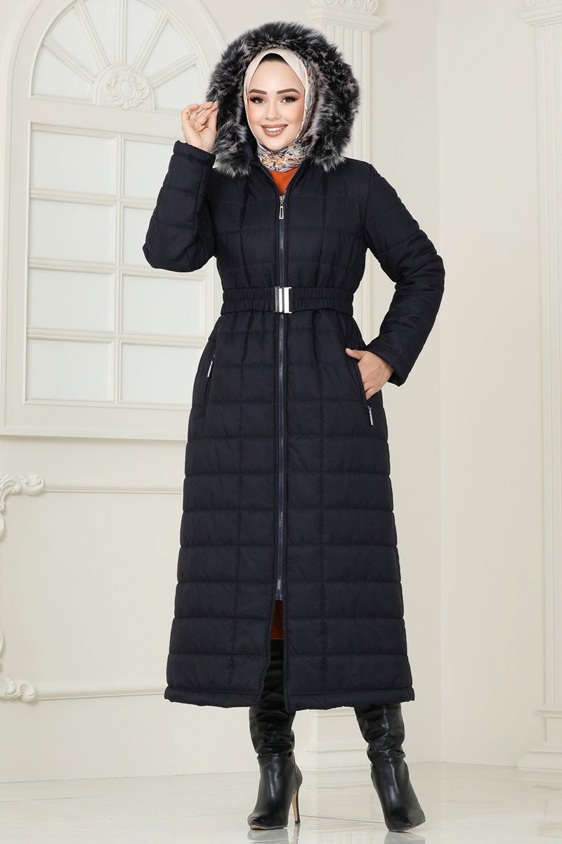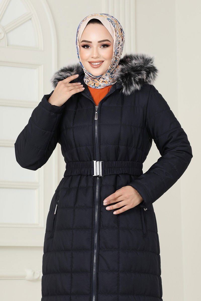 Product Feature : It is a new season hijab fashion product. The product has a Hooded collar. It is lined.. The product has a zipper at the From the front part. The fur is sewn into the product. The hood is sewn to the product. Belt included, optional not available. Pocket available. There may be a tonal difference in the product due to concept photo shoots.