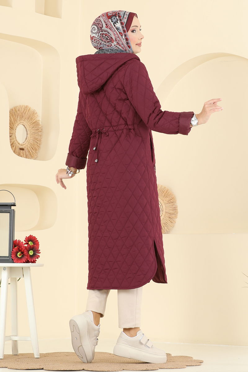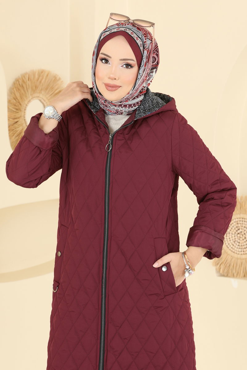 Meet the Hooded Quilted Coat, your go-to garment for the colder autumn and winter seasons. This modesty coat stands out with the comfort and style of quilted fabric. It allows for gentle washing at 30 degrees, ensuring durability and easy maintenance. The hooded design, zippered front, and adjustable tie at the back offer both functionality and a stylish appearance. The slit detail provides freedom of movement, while the lined interior keeps you warm. The size 38 on the model ensures a perfect fit for all sizes. Practical pocket details make everyday use easier.