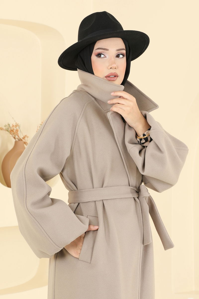 The Balloon Sleeve Wool Coat offers elegance and comfort with its hijab design for autumn and winter seasons. Notable for its washable fabric at 30 degrees, this coat is both durable and stylish. Featuring a double-breasted collar and lined design, it provides a high-level look while the included optional belt elegantly cinches the waist. The balloon sleeve design and multiple size options ensure a fit for every body type. Functional pocket details enhance usability. This coat is set to be an essential part of your winter wardrobe!