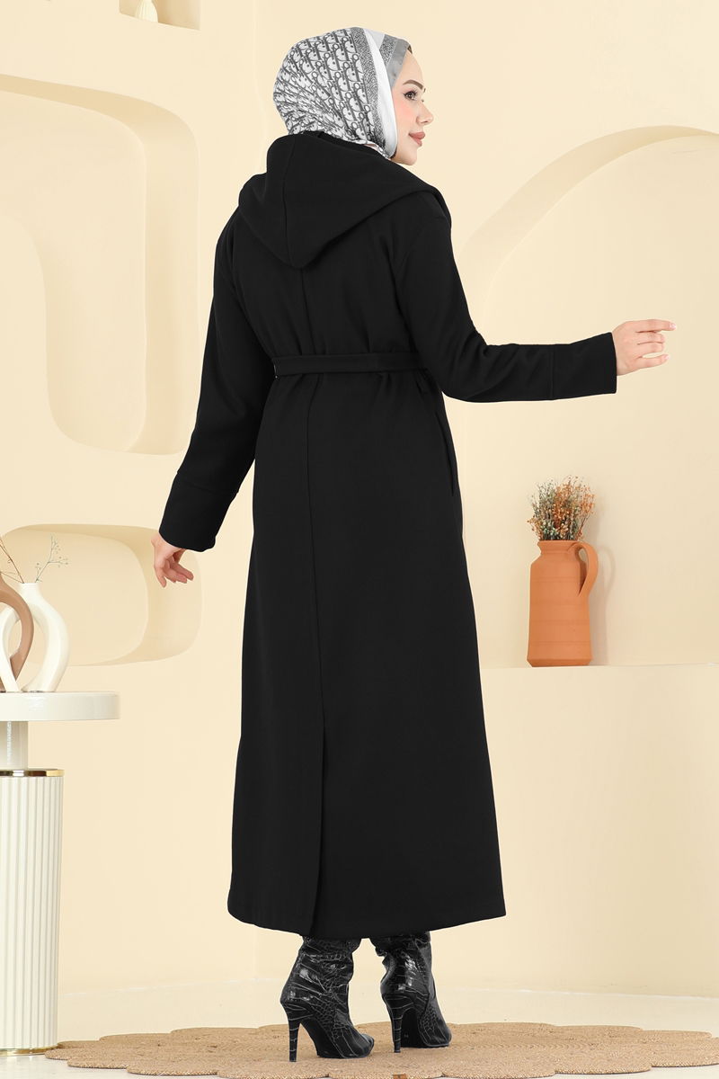 Keep warm during the autumn and winter seasons with our Double-Breasted Hooded Coat, designed specifically for modest fashion. Made from special cashmere fabric, it offers a soft touch. It can be washed delicately at 30 degrees, ensuring a long-lasting use. The double-breasted front and button details provide a classic and elegant look. The lining offers maximum comfort. The fixed hood and belt detail add both functionality and aesthetic coherence. The belt can be optionally omitted. This coat is the perfect choice to keep you warm while maintaining your style on cold days.
