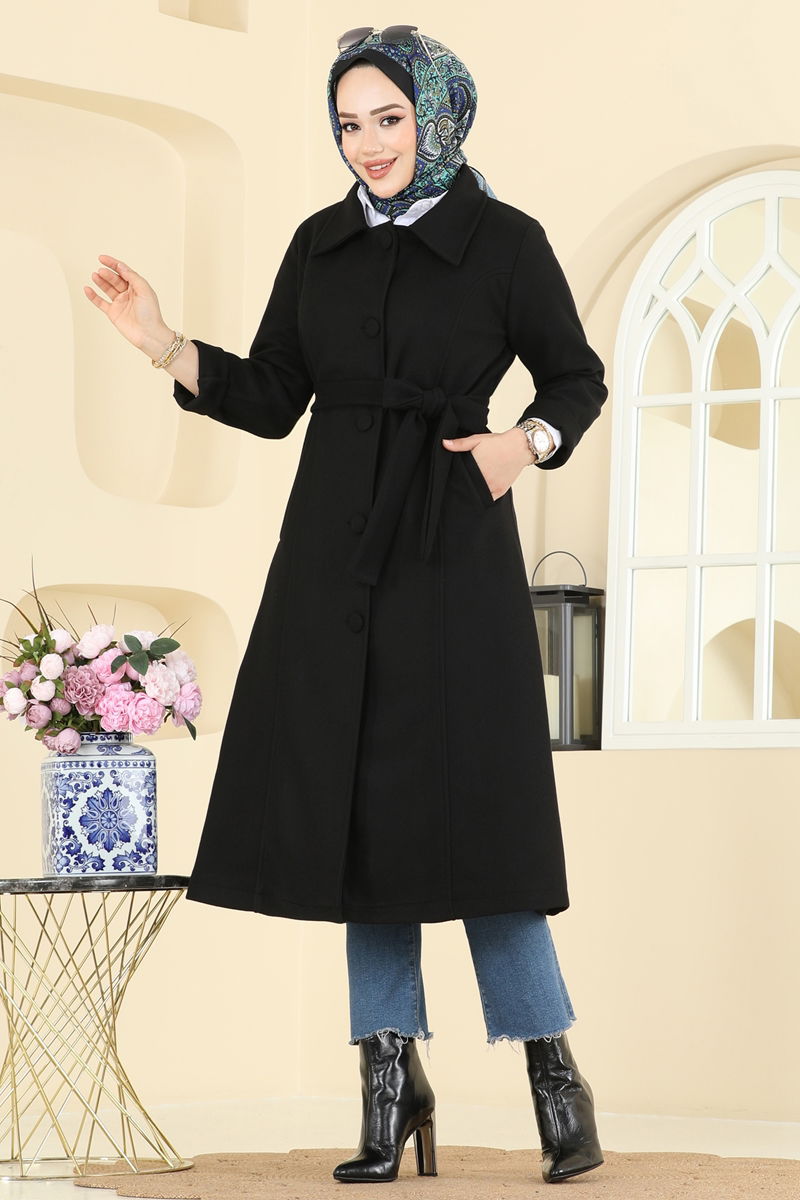The Collar Neck Cashmere Coat is an essential for the autumn and winter seasons, offering elegance and comfort together. This coat stands out with its modest design and is crafted from high-quality cashmere fabric to keep you warm in cold weather. The shirt collar detail ensures you stay stylish while the front buttons and a spacious interior structure offer ease of use. Additionally, the belt detail allows you to accentuate your waist as desired.