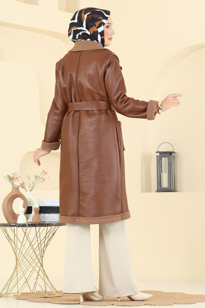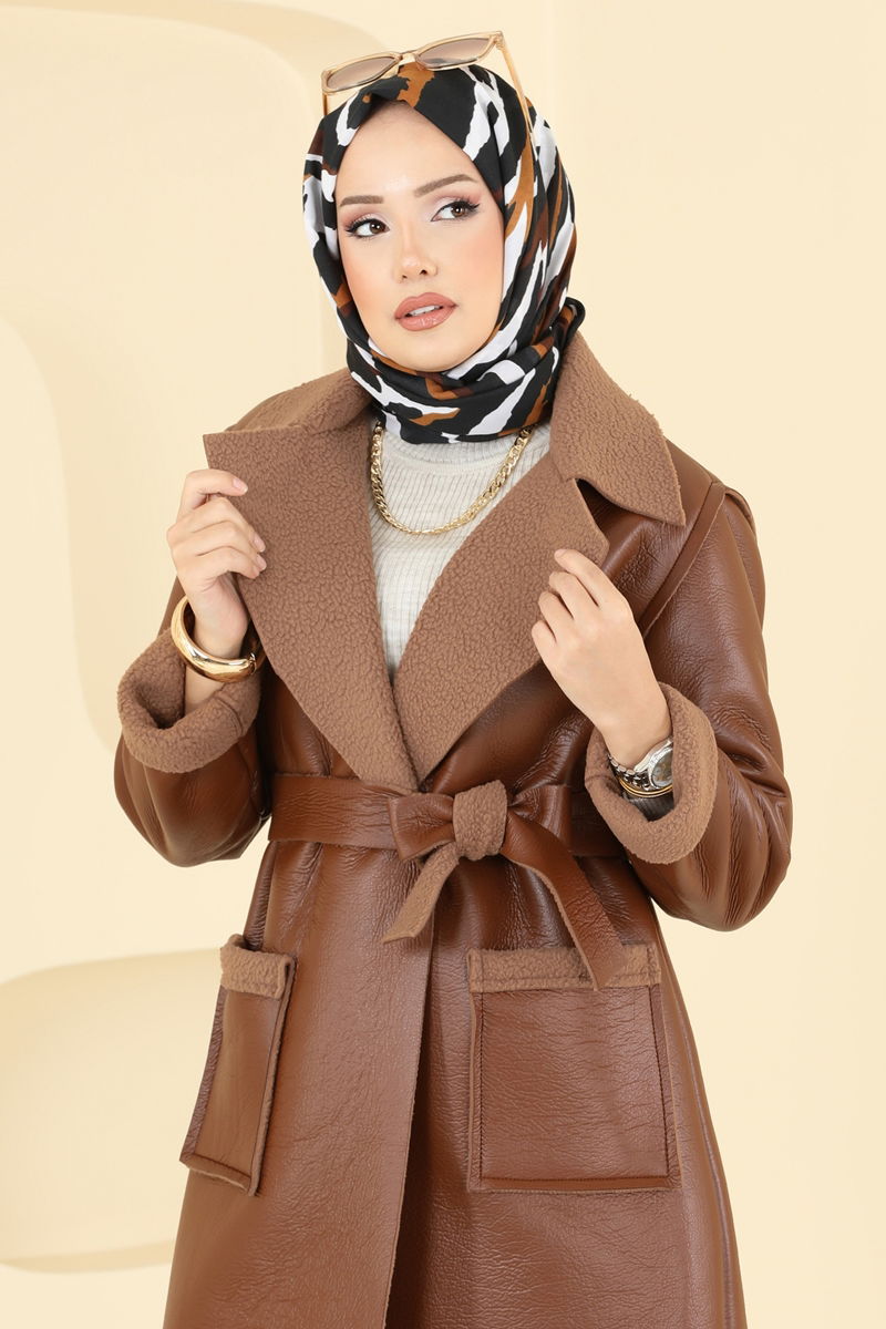 المنتج لديه ياقة مفتوحة. فراء بالداخل.. الحزام متضمن، ،يمكن استخدامها حسب الرغبة الجيب متاح. قد يكون هناك اختلاف في الدرجة اللونية في المنتج بسبب التقاط الصور الفوتوغرافية.