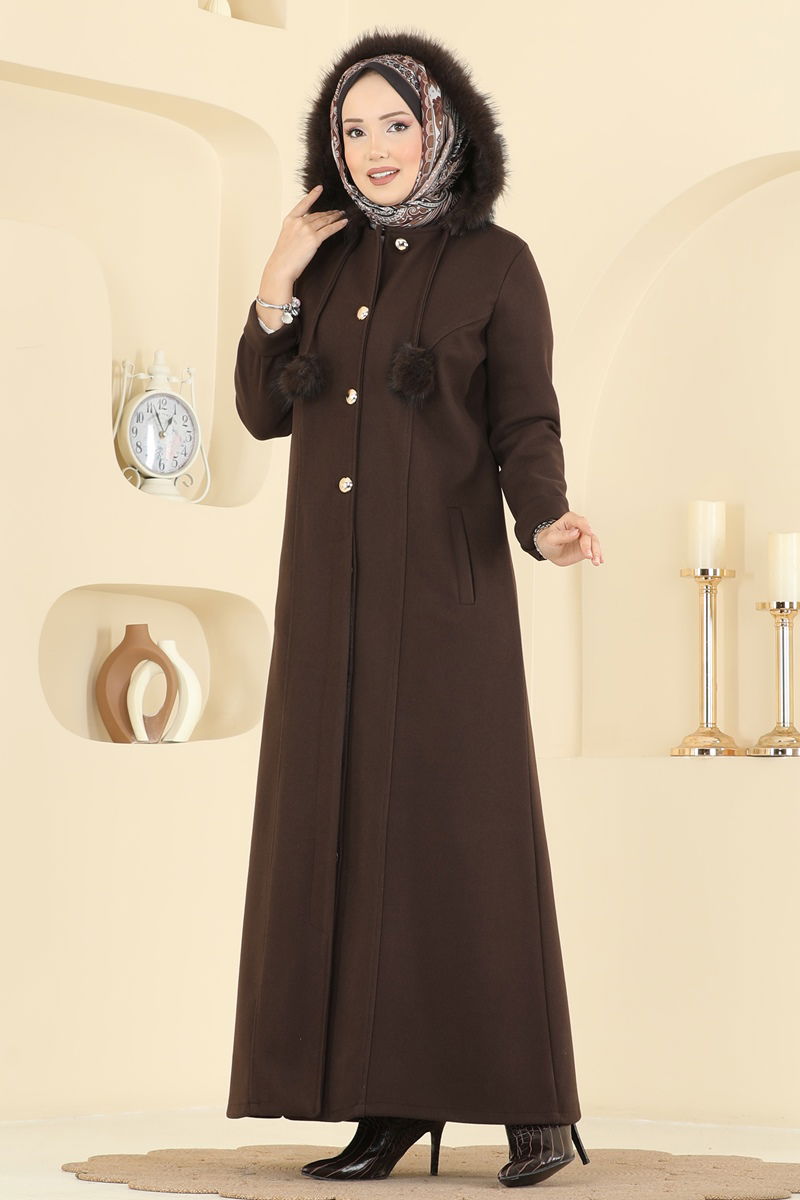 Maintain your elegance during the winter months! The Fur Detailed Wool Coat is specially designed for the fall and winter fashion. The KABAN model offers practical use with its hooded and buttoned front design. This coat, which needs to be dry cleaned, is unlined for comfortable wear. With its lace details and sewn hood, it will add style to any outfit. Our product is presented in size 38 on the model, and it is functional with its pockets.