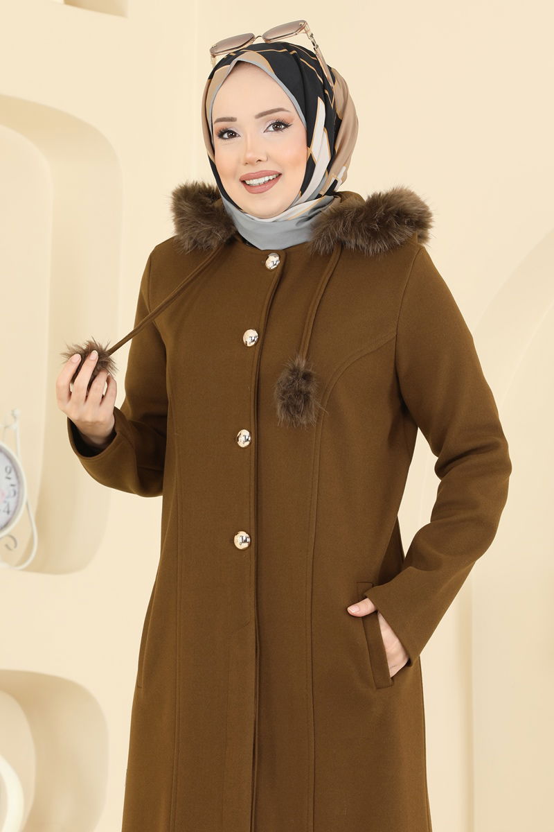 Maintain your elegance during the winter months! The Fur Detailed Wool Coat is specially designed for the fall and winter fashion. The KABAN model offers practical use with its hooded and buttoned front design. This coat, which needs to be dry cleaned, is unlined for comfortable wear. With its lace details and sewn hood, it will add style to any outfit. Our product is presented in size 38 on the model, and it is functional with its pockets.