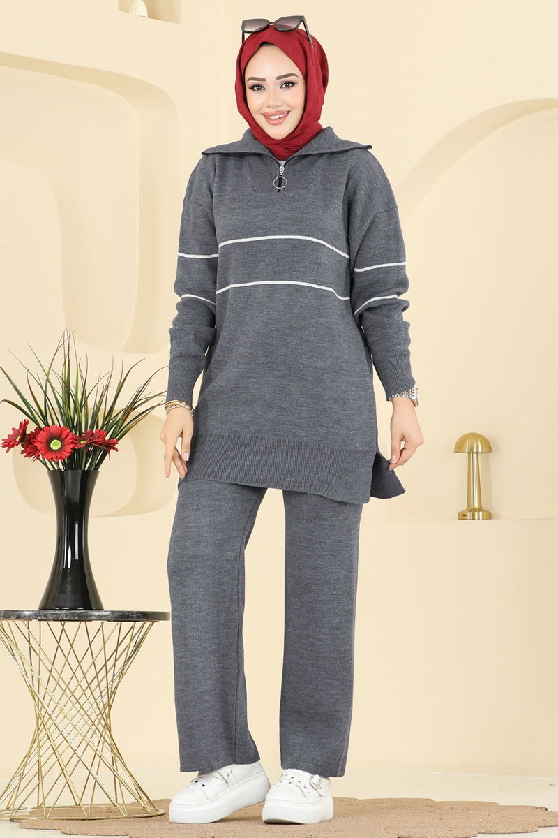 Product Feature : It is a new season hijab fashion product. The product has a Upright collar. It's unlined. It's see-through.. The waist of the trousers is elastic. There may be a tonal difference in the product due to concept photo shoots.