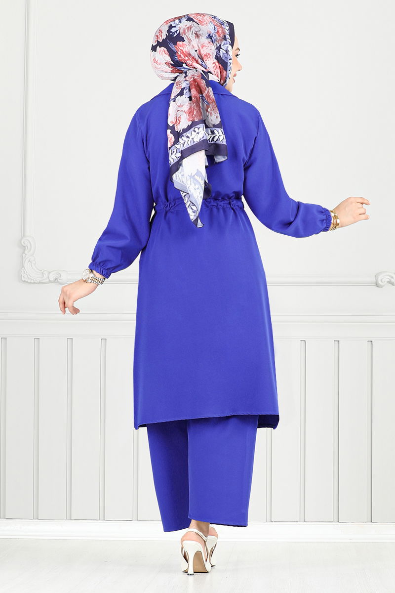 يتميز بخصر ذو أربطة. المنتج لديه ياقة مفتوحة. المنتج به أزرار من الأمام. يحتوي على فتحة. غير مبطنة. خصر البنطال مرن. السوار مطاطي. قد يكون هناك اختلاف في الدرجة اللونية في المنتج بسبب التقاط الصور الفوتوغرافية.