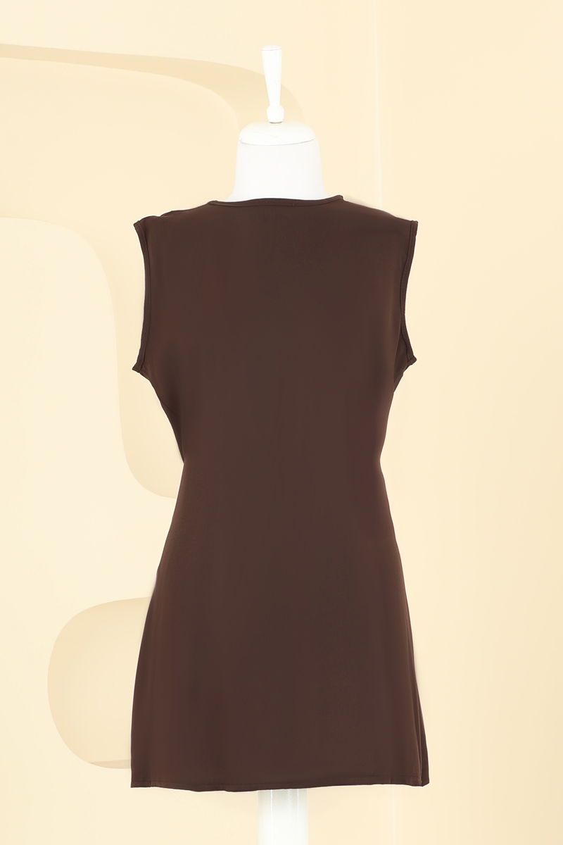 يوجد زر يمكن استخدامه من الخلف. المنتج لديه ياقة دائرية. غير مبطنة. السترة الداخلية بلا أكمام. خصر البنطال مرن. قد يكون هناك اختلاف في الدرجة اللونية في المنتج بسبب التقاط الصور الفوتوغرافية.