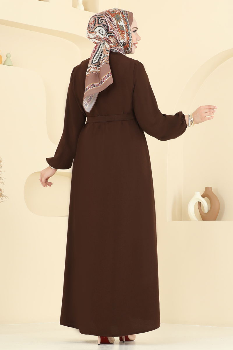 يوجد زر يمكن استخدامه من الخلف. المنتج لديه ياقة دائرية. غير مبطنة. الحزام متضمن، ،يمكن استخدامها حسب الرغبة السوار مطاطي. قد يكون هناك اختلاف في الدرجة اللونية في المنتج بسبب التقاط الصور الفوتوغرافية.