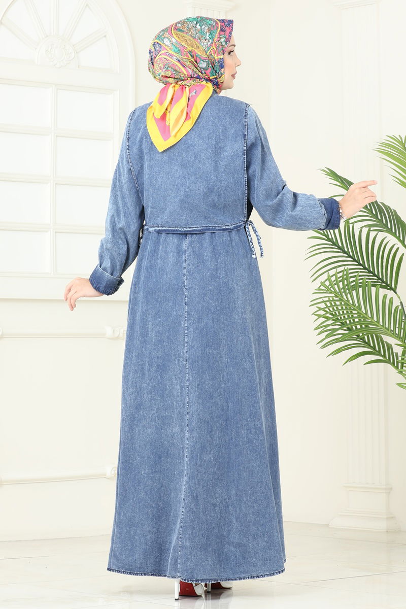 The Tie Vest Denim Dress is a stylish and comfortable choice specially designed for veiled women. Suitable for all seasons, this dress offers ease of use with its 30-degree delicate wash feature. The bicycle collar and front button design provide a modern look, while the zipper at the back ensures practical use. With its side-tied vest and active cuff buttons, this combination is perfect for maintaining your elegance in any setting.