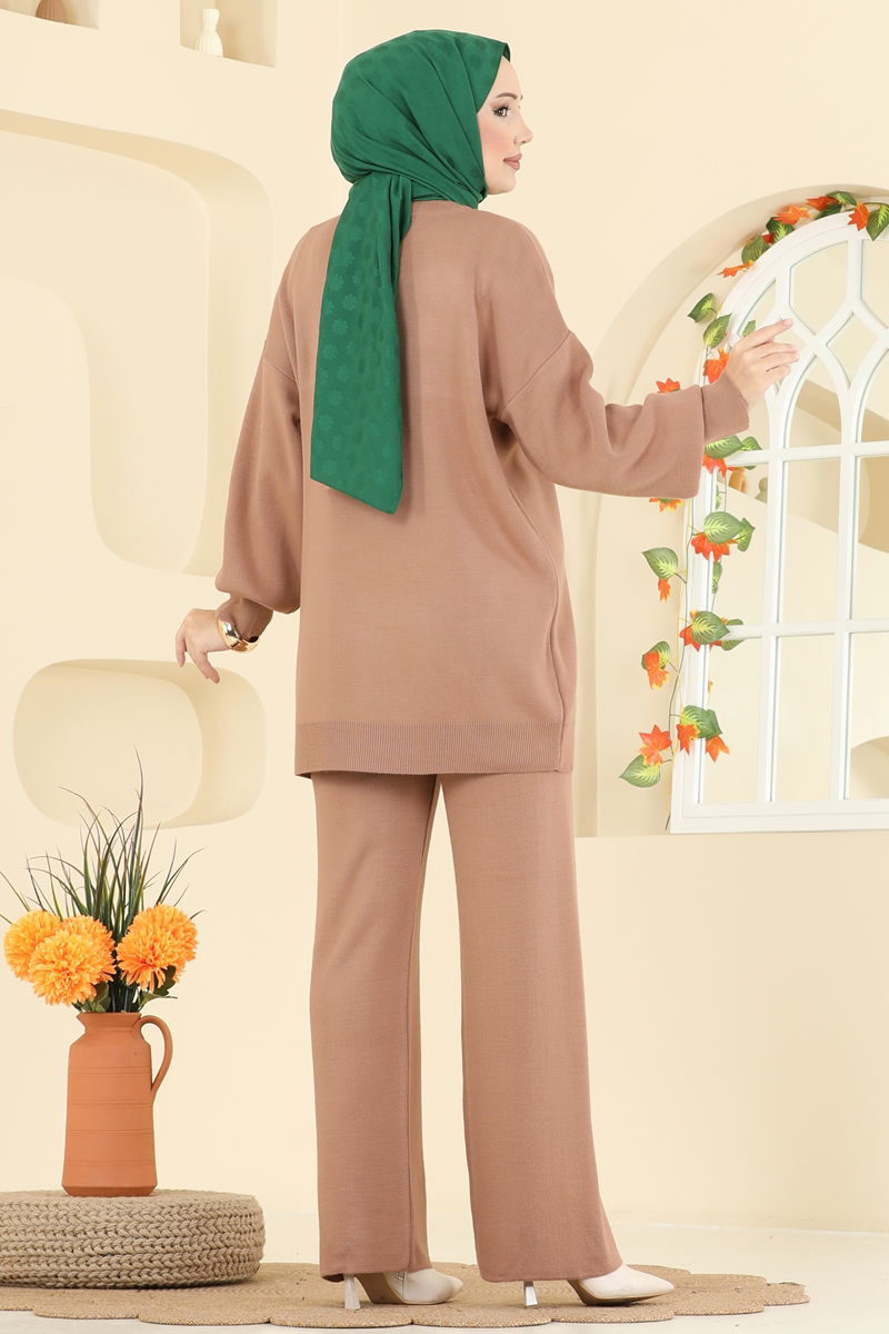 This elegant Stone-Embellished Knitwear Set is the perfect modest ensemble for your autumn and winter. Made from soft knit fabric, it can be gently washed at 30 degrees to maintain its quality. The crew neck and unlined design offer comfortable wear, while the affixed crystals on the tunic enhance your sparkle. The elastic waistband on the pants ensures comfort. Available in standard sizing, this set combines elegance with ease.