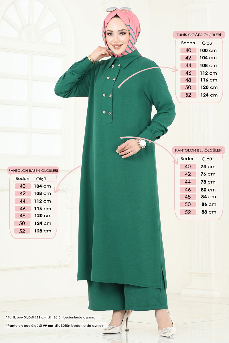 بلوز مقاسات الحجم (سم)الحجم الصدر الطول 40 100 121 42 104 121 44 108 121 46 112 121 48 116 121 50 120 121 52 124 121 بنطلون مقاسات الحجم (سم)الحجم الخصر الورك الطول 40 74 104 99 42 76 108 99 44 78 112 99 46 80 116 99 48 84 120 99 50 86 124 99 52 88 128 99 الوزن(كجم):0.63 -