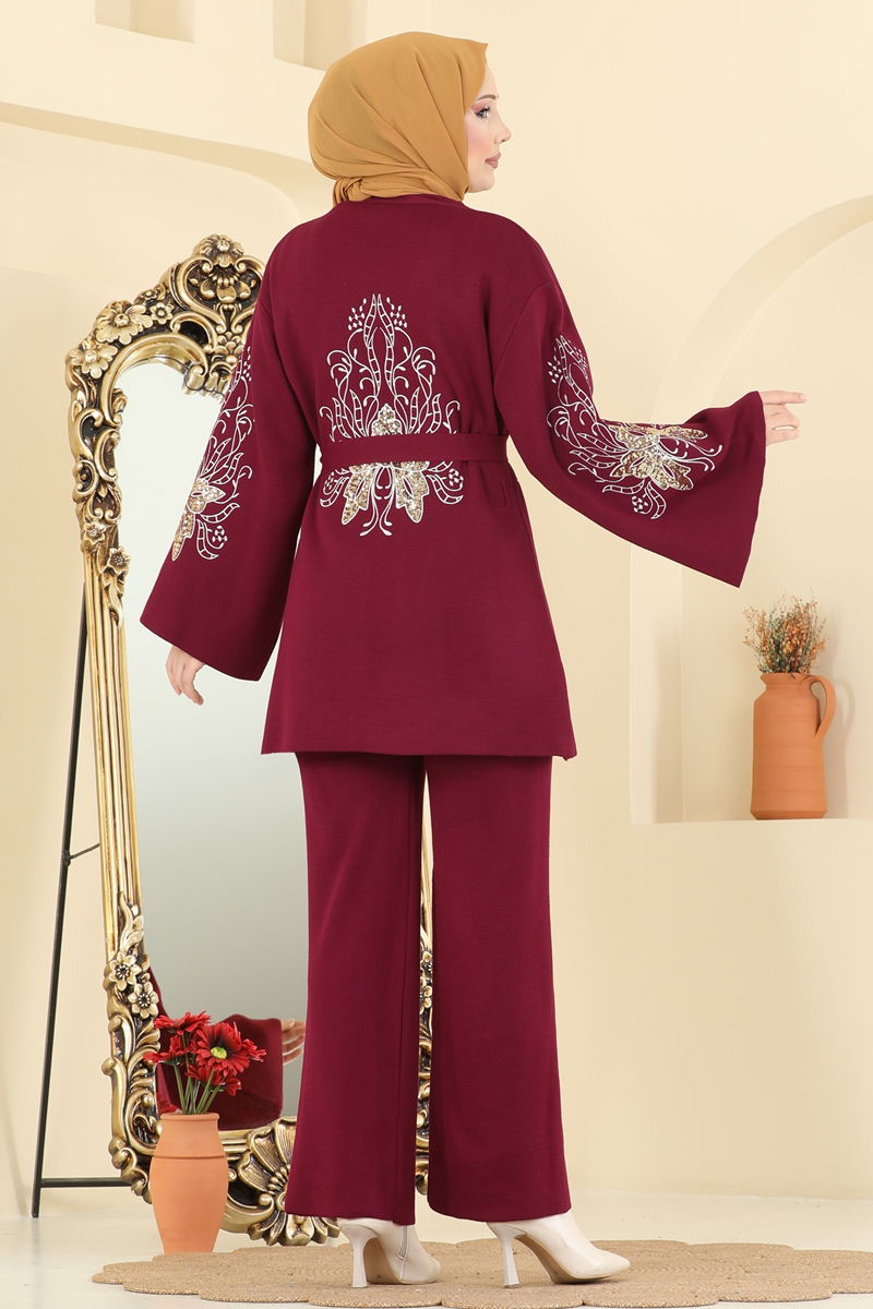 Product Feature : It is a new season hijab fashion product. The product has a Double-breasted collar. Unlined. Sequin sequin detail is sewn. Belt included, optional not available. The waist of the trousers is elastic. There may be a tonal difference in the product due to concept photo shoots.