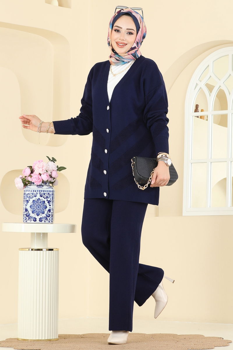 المنتج لديه ياقة ياقة V. المنتج به أزرار من الأمام. غير مبطنة. البلوزة غير متضمنة. صُنعت عينة من المجموعة مع البلوزة لإظهار الاستخدام المقصود للمنتج. خصر البنطال مرن. قد يكون هناك اختلاف في الدرجة اللونية في المنتج بسبب التقاط الصور الفوتوغرافية.