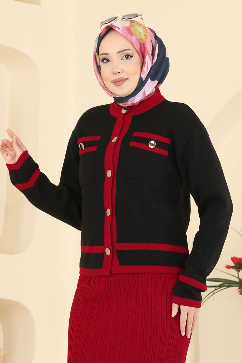 The Chic Knitted Cardigan Set is an ideal option for special occasions and everyday wear, particularly in modest fashion. Designed for comfort and elegance during the autumn and winter seasons, this set is made from soft knitted fabric. It features a high-neck design and button-down cardigan that stands out. Its unlined structure offers light and comfortable wear. Available in standard sizes, the sleeveless inner dress adds a modern touch to modest apparel.