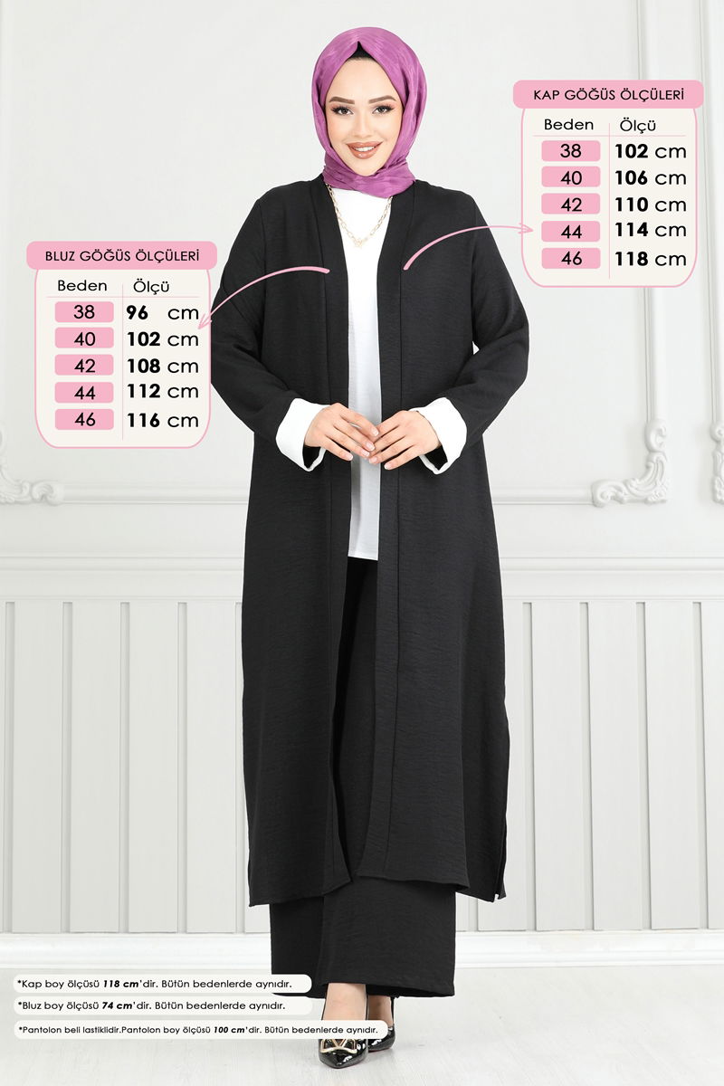 كاب مقاسات الحجم (سم)الحجم الصدر الطول 38 102 118 40 106 118 42 110 118 44 114 118 46 118 118 بلوز مقاسات الحجم (سم)الحجم الصدر الطول 38 96 74 40 102 74 42 108 74 44 112 74 46 116 74 بنطلون مقاسات الحجم (سم)الحجم الطول 38 100 40 100 42 100 44 100 46 100 الوزن(كجم):0.58 -