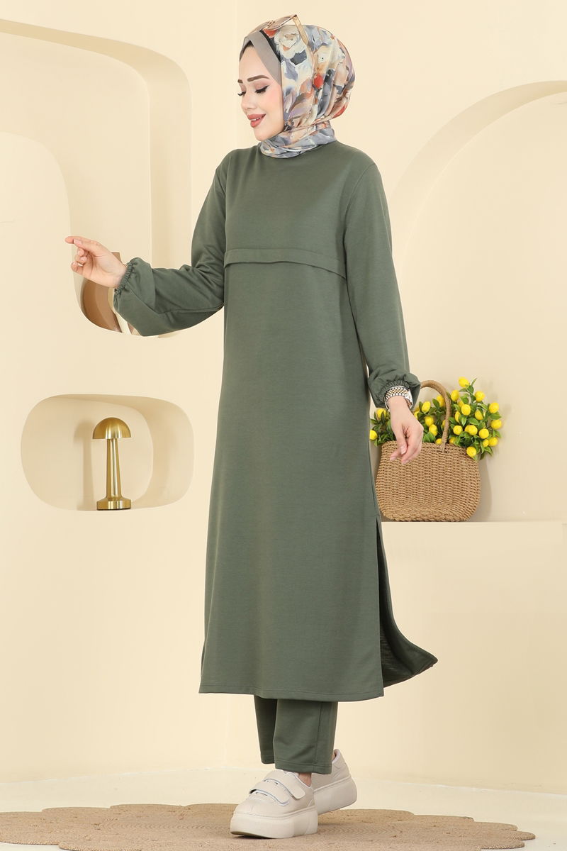 Product Feature : It is a new season hijab fashion product. The product has a Cycling collar. The tunic has a side slash.. Unlined. The waist of the trousers is elastic. The cuff is rubberized. There may be a tonal difference in the product due to concept photo shoots.
