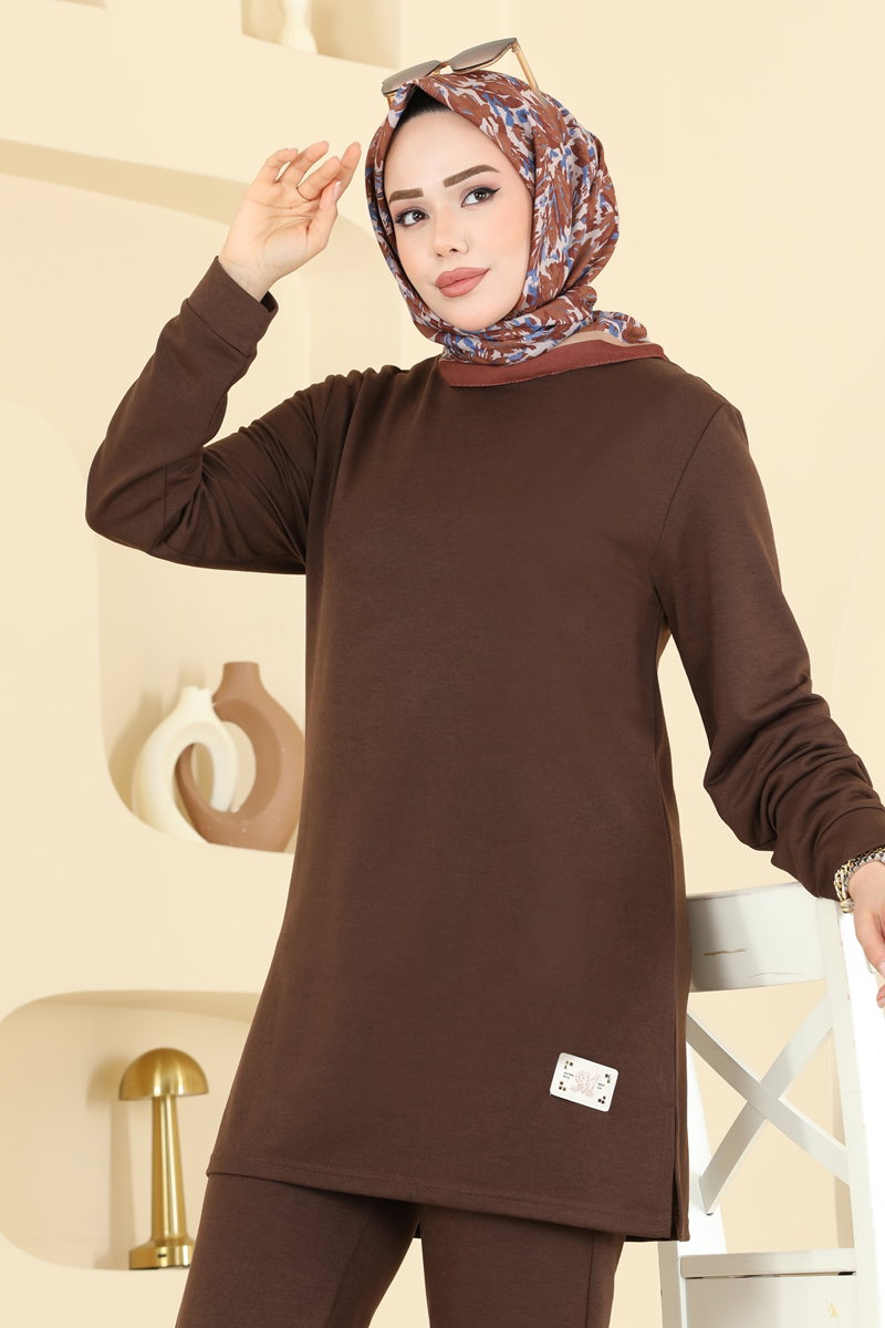 The Arma Detailed Double Set KOMBIN is a hijab garment suitable for use in all four seasons. Recommended for delicate wash, this product can be washed at 30 degrees Celsius. Made from dual-thread fabric, it features a bicycle collar design. The tunic offers freedom of movement with its side slit detail, while the elastic waist of the pants provides comfort. The product completes your elegance with its badge detail, while its lining-free structure makes it light and practical.