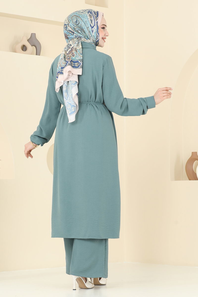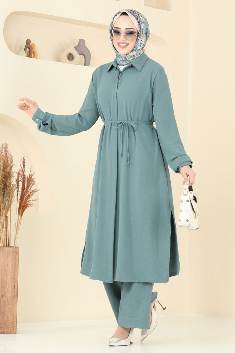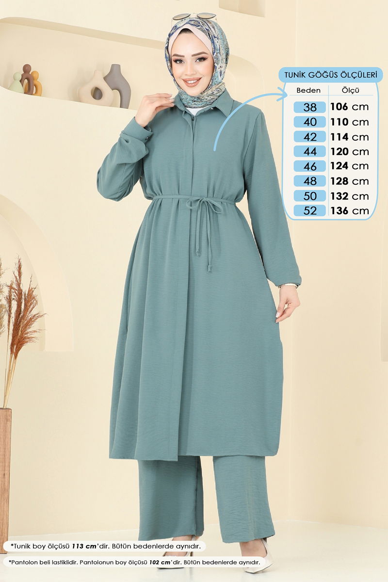 المنتج لديه ياقة القميص. المنتج به أزرار جيزلي. البلوز تحتوي على فتحة. غير مبطنة. الحزام متضمن، ،يمكن استخدامها حسب الرغبة البلوزة غير متضمنة. صُنعت عينة من المجموعة مع البلوزة لإظهار الاستخدام المقصود للمنتج. الجيب متاح. خصر البنطال مرن. أزرار الكفة نشطة. قد يكون هناك اختلاف في الدرجة اللونية في المنتج بسبب التقاط الصور الفوتوغرافية.