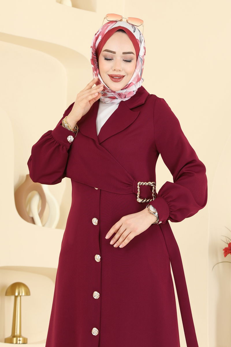 The Detailed Dabıl Suit is a modern and stylish modest wear. Suitable for all seasons, it can be washed in a gentle cycle at 30 degrees. Made from Dabıl fabric, this suit features a jacket-style collar and fastens with buttons at the front. Its unlined design, hidden pockets, and stitched buckle detail on the top part enhance its elegant appearance. The pants have an elastic waistband and, along with the tunic, create a perfect match. The active buttons on the cuffs add functionality.