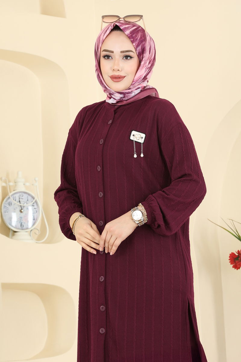 Product Feature : It is a new season hijab fashion product. The product has a Cycling collar. The product has From the front buttons. The tunic has a side slash.. Unlined. The coat of arms detail is sewn. The waist of the trousers is elastic. The cuff is rubberized. There may be a tonal difference in the product due to concept photo shoots.