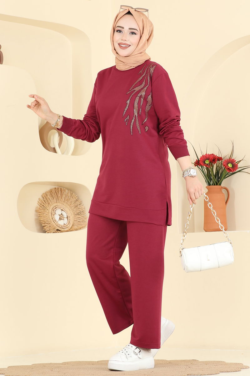 المنتج لديه ياقة دائرية. البلوز تحتوي على فتحة. غير مبطنة. يتم لصق الحجارة. خصر البنطال مرن. قد يكون هناك اختلاف في الدرجة اللونية في المنتج بسبب التقاط الصور الفوتوغرافية.