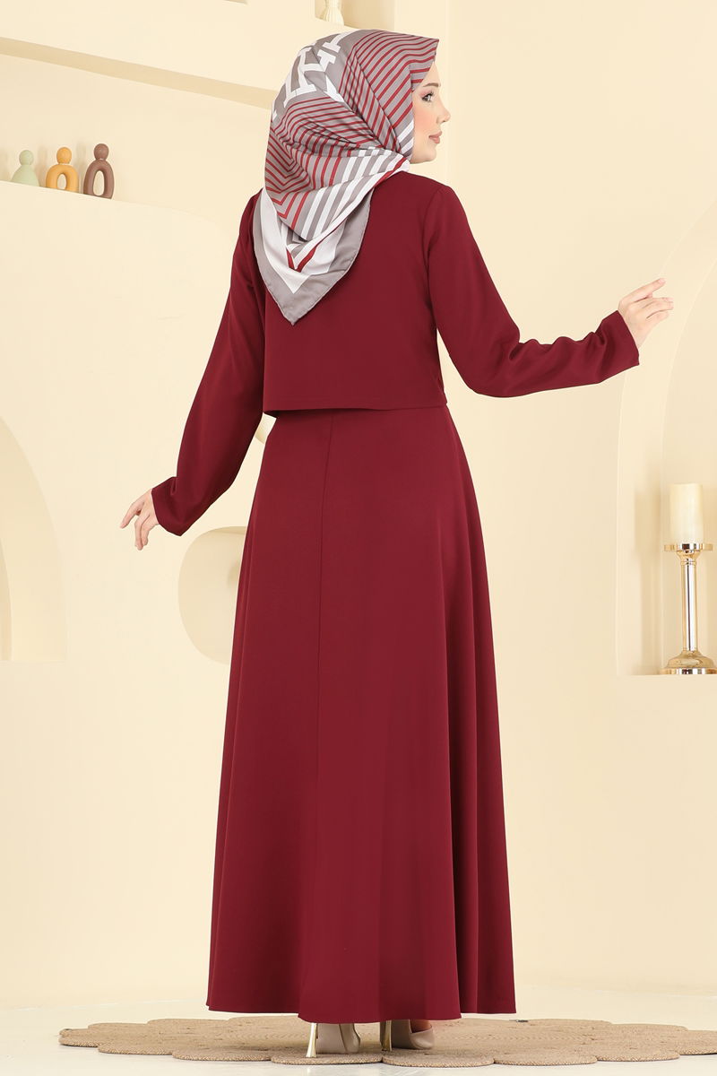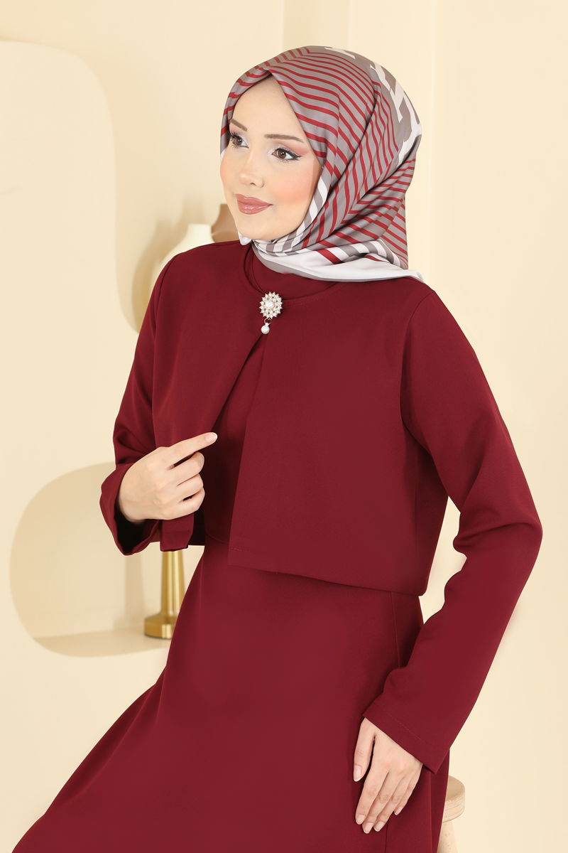 Elevate your style with the Brooch-Accessorized Dabıl Suit KOMBİN model, an Islamic clothing option suitable for all seasons. Washable at 30 degrees on a gentle cycle, this high-quality Dabıl fabric product features a Half Mandarin collar and a back zipper for a modern look, while its lining-free design ensures comfort. The belted waist and sleeveless inner dress differentiate this outfit. The removable brooch accessory lets you alter its flair as desired. Suitable for both everyday and special occasions, this combination keeps your elegance in focus.